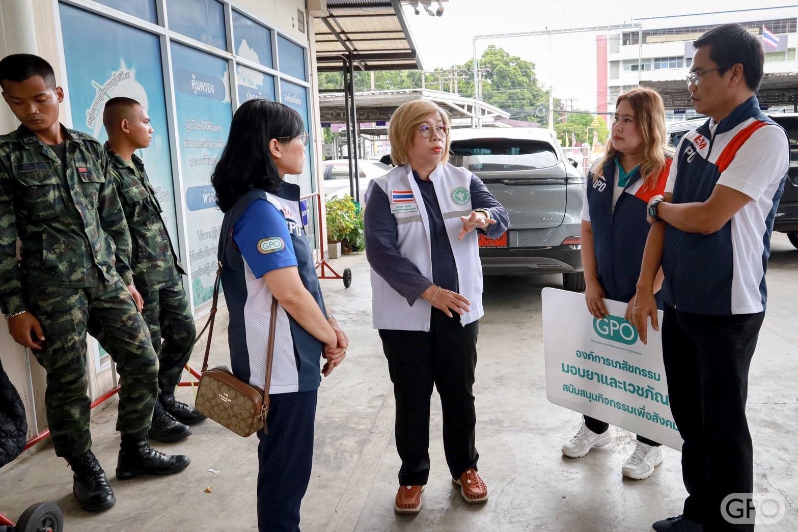 เมื่อวันที่ 27 กรกฎาคม 2567 เวลา 15.00 น. องค์การเภสัชกรรม โดยนางสุนิสา พรหมประสิทธิ์ ผู้อำนวยการกองสื่อสารองค์กร นายวิชาญ ปล้องไหม ผู้อำนวยการกองพัฒนาองค์กรเพื่อความยั่งยืน และคณะ นำทีมลงพื้นที่มอบยาและเวชภัณฑ์ที่จำเป็น ให้กับภญ.กนกพร ชนะค้า เภสัชกรเชี่ยวชาญ(ด้านเภสัชสาธารณสุข) รองนายแพทย์สาธารณสุขจังหวัดบุรีรัมย์ เพื่อนำไปช่วยเหลือประชาชนที่ได้รับผลกระทบจาก สถานการณ์ชายแดนไทย-กัมพูชา ในพื้นที่จังหวัดบุรีรัมย์