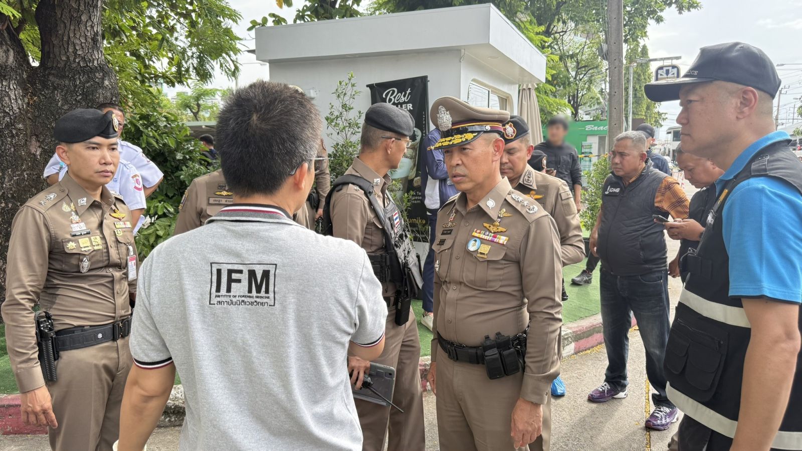 พล.ต.ท.สยาม บุญสม ผบช.น. พร้อมด้วย พล.ต.ท.จิรภพ ภูริเดช ผบช.ก. พล.ต.ต.นพศิลป์ พูลสวัสดิ์ รองผบช.น. และ พล.ต.ต.โชติวัฒน์ เหลืองวิลัยผบก.สส.บช.น. พล.ต.ต.เจษฎา สวยสม ผบก.บก.น.2 พ.ต.อ.สนอง แสงมณี ผกก.สน.บางซื่อ เข้าตรวจสอบที่เกิดเหตุด้วยตนเอง