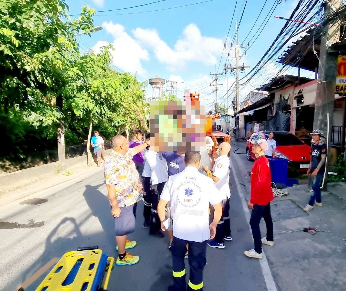 จ.ภูเก็ต นายกเทศมนตรีฉลอง ลงพื้นที่ช่วยเหลือพนักงานบริษัทเอกชน ถูกไฟช็อตบาดเจ็บ 2 ราย จนท.เร่งนำส่ง รพ.