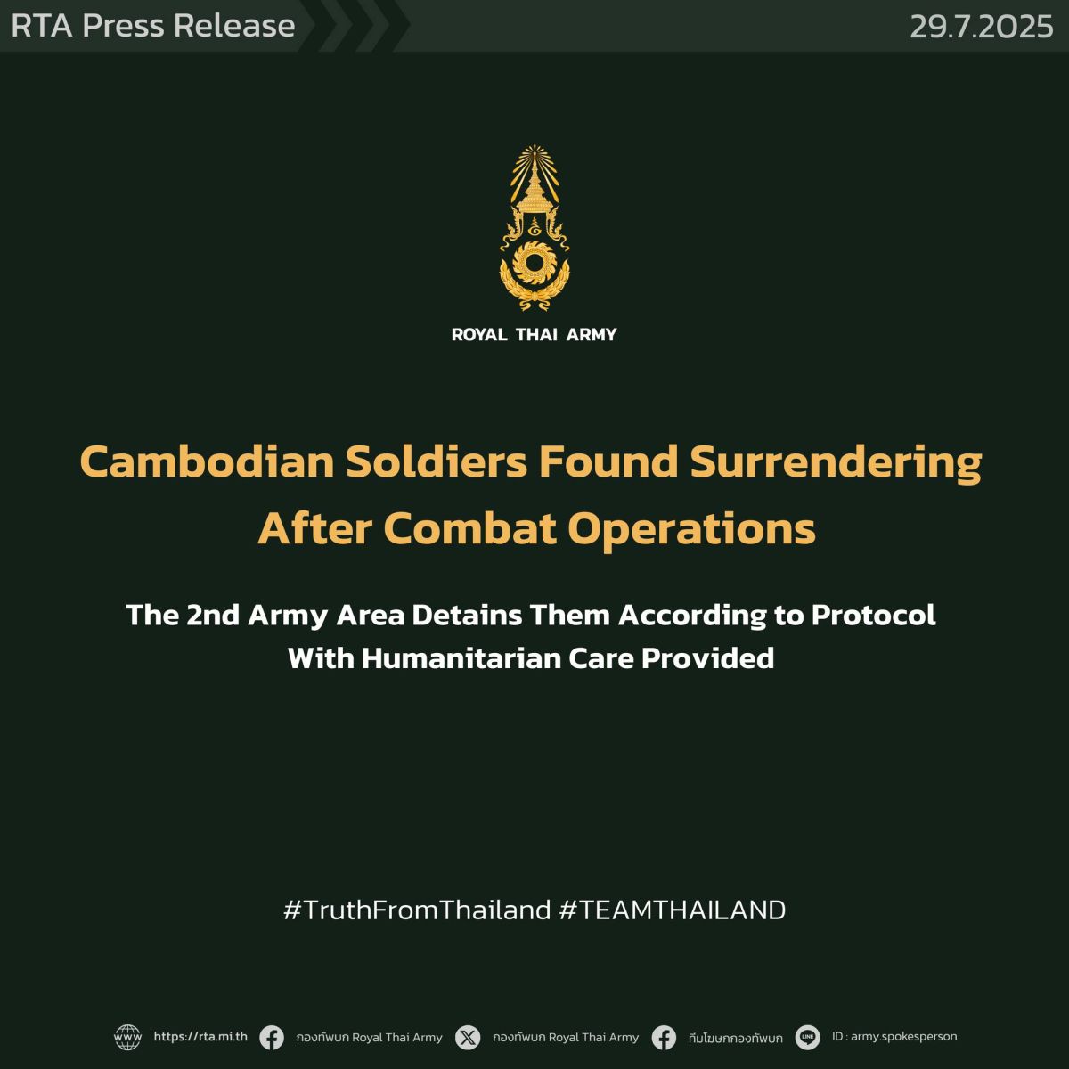 Royal Thai Army Public Relations Center, Army Spokesperson Team, 29 July 2025