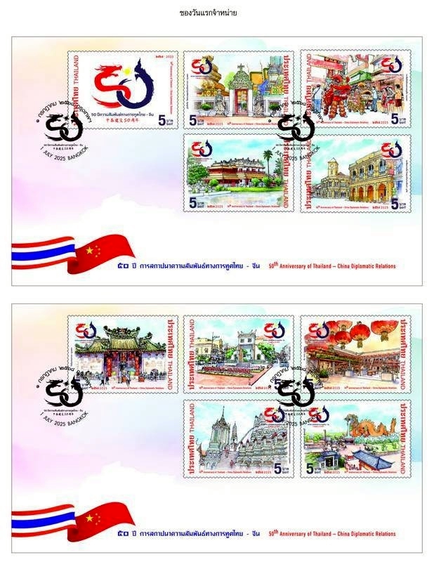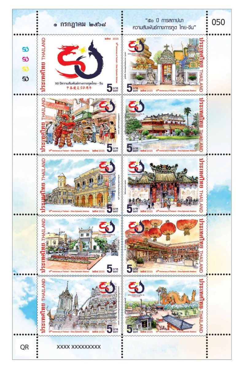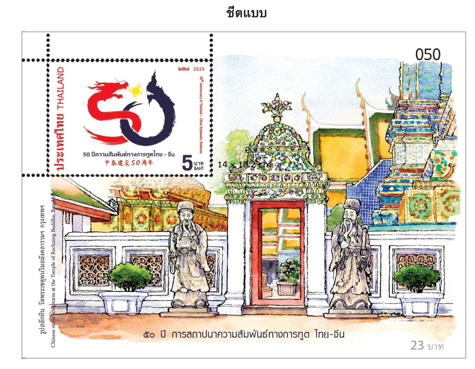 ไปรษณีย์ไทยได้ทำหน้าที่เป็นทูตวัฒนธรรม จัดสร้างแสตมป์ที่ระลึกบันทึกประวัติศาสตร์ และสะท้อนมิตรภาพระหว่างไทย–จีนอย่างลึกซึ้ง โดยเฉพาะในวาระครบรอบ 50 ปี แห่งการสถาปนาความสัมพันธ์ทางการทูต ได้จัดทำแสตมป์ชุดพิเศษ “50 ปี ไทย–จีน” ที่ผสานพญานาคของไทยและมังกรของจีนเป็นเลข 50 พร้อมภาพจำสำคัญ เช่น การเชิดสิงโต พระที่นั่งเวหาศน์จำรูญ และอาคารสถาปัตยกรรม จีน-โปรตุเกสในภูเก็ต ที่สื่อถึงความสัมพันธ์ทางวัฒนธรรมที่หยั่งรากลึกและต่อเนื่อง แสตมป์ชุดนี้จึงเป็นมากกว่าสิ่งสะสม แต่คือสื่อกลางของ Soft Power ที่ใช้ “ภาพหนึ่งภาพ” สื่อสารประวัติศาสตร์และมิตรภาพ ข้ามพรมแดน ทั้งยังต่อยอดจากแสตมป์ชุดครบรอบ 20 ปี ไทย–จีน ที่บันทึกหมุดหมายสำคัญของสายสัมพันธ์ระหว่างประเทศ และได้ยืนยันบทบาทไปรษณีย์ไทยในฐานะผู้ถ่ายทอดเรื่องราวระหว่างสองอารยธรรมผ่านศิลป์บนแสตมป์อย่างต่อเนื่อง