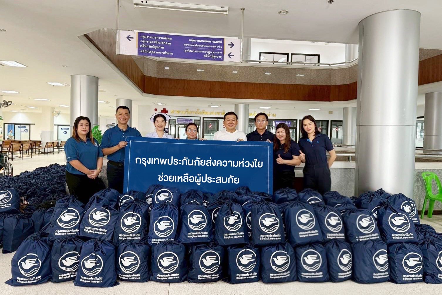 จากสถานการณ์อุทกภัยที่ส่งผลกระทบในหลายพื้นที่ของจังหวัดน่าน บริษัท กรุงเทพประกันภัย จำกัด (มหาชน) ห่วงใยประชาชนที่ได้รับความเดือดร้อน โดยนายธีรยุทธ กิจวรพัฒน์ ผู้อำนวยการธุรกิจสาขา พร้อมด้วยพนักงานจิตอาสา ร่วมมอบถุงยังชีพซึ่งบรรจุข้าวสาร อาหารแห้ง น้ำดื่ม และของใช้ในชีวิตประจำวันที่จำเป็น เพื่อช่วยบรรเทาความเดือดร้อนเบื้องต้นแก่ผู้ประสบภัยในพื้นที่ต่างๆ รวมจำนวนกว่า 500 ชุด ได้แก่ ศูนย์ช่วยเหลือผู้ประสบภัยน้ำท่วมเทศบาลเมืองน่าน โดยมีนายปกฤษณ์ คำเหลืองปลัดเทศบาลเมืองน่าน เป็นผู้แทนรับมอบ และได้มอบถุงยังชีพให้แก่โรงพยาบาลน่าน โดยมี พว.นิตยา หงส์เจริญ ผู้ช่วยรองผู้อำนวยการฝ่ายการพยาบาล เป็นผู้แทนรับมอบ นอกจากนี้ ยังได้ลงพื้นที่มอบถุงยังชีพให้แก่ประชาชนในชุมชนบ้านสวนตาล อำเภอเมือง จังหวัดน่าน
