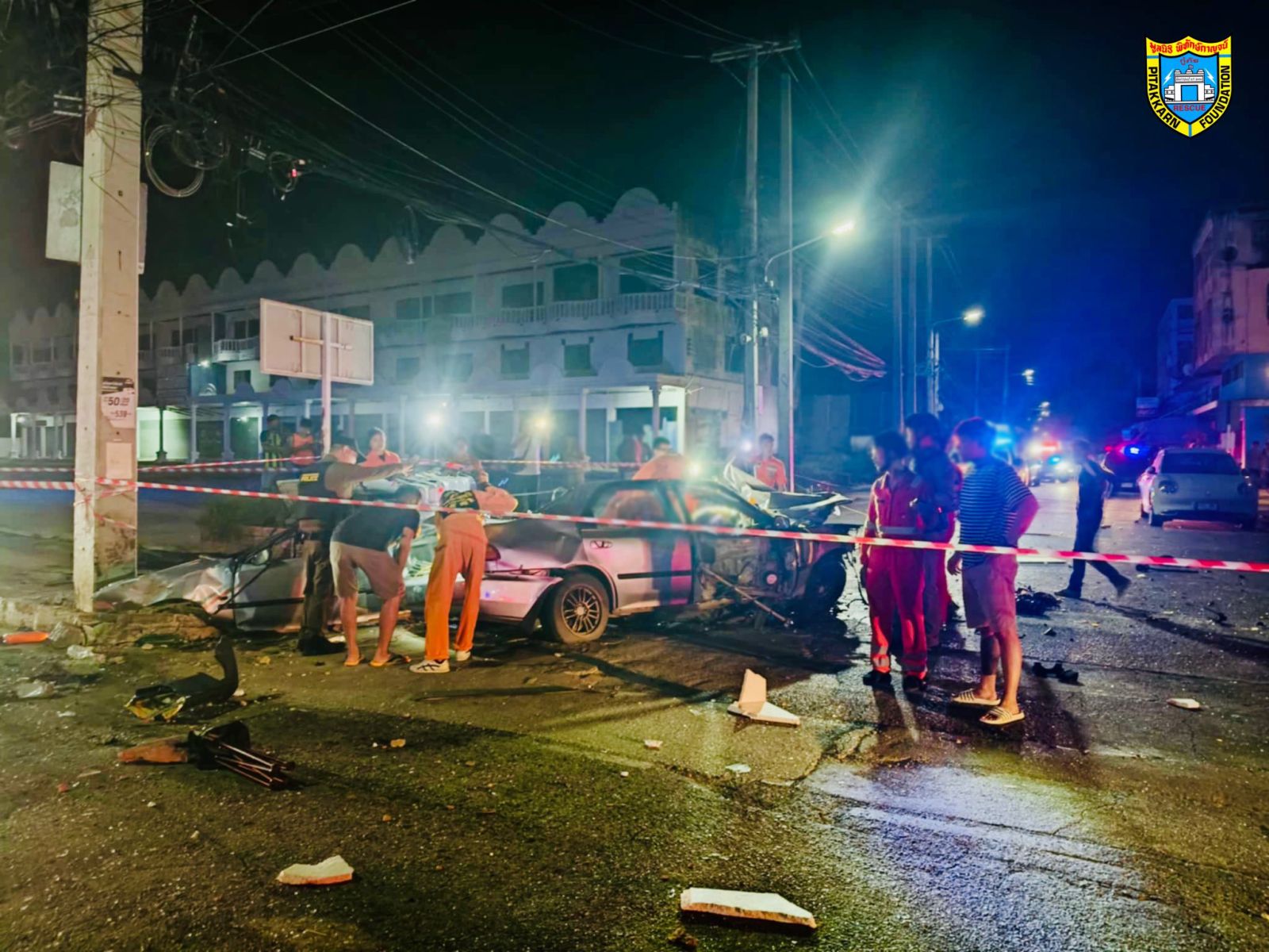 หนุ่มชาวศรีสวัสดิ์ ขับรถนั่งส่วนบุคคลเสียหลักชนเข้ากับเสาไฟฟ้าริมถนนแสงชูโต เสียชีวิตในซากรถ จ.กาญจนบุรี