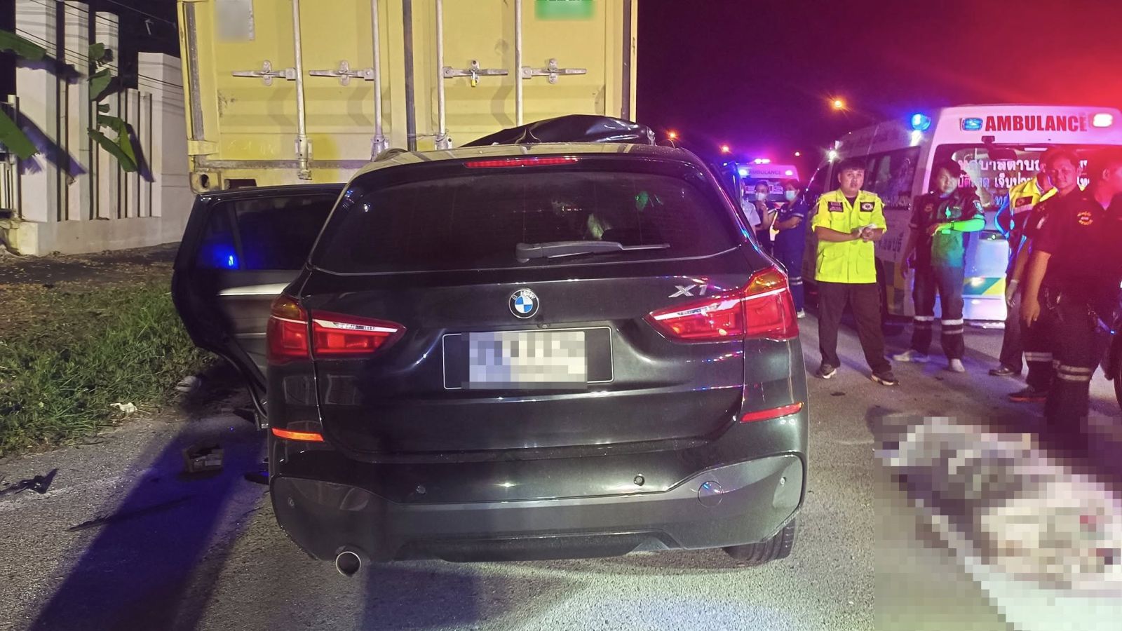 ที่เกิดเหตุ พบรถนั่งส่วนบุคคล BMW สีดำ ป้ายทะเบียน กทม. ลักษณะชนเข้าท้ายรถเทรลเลอร์ สีเขียว ป้ายทะเบียน กทม. ตรวจสอบภายในยานพาหนะ พบว่าผู้ขับขี่เป็นผู้หญิง ได้เสียชีวิตในเวลาต่อมา ตรวจสอบเอกสาร เป็นหญิงไทย อายุ 35 ปี ทางอาสาสมัครจึงดำเนินการใช้เครื่องมือตัดถ่างงัดรถและนำร่างออกมา ในส่วนของสาเหตุอยู่ระหว่างการสอบสวนของเจ้าหน้าที่ตำรวจ สภ.บางละมุง