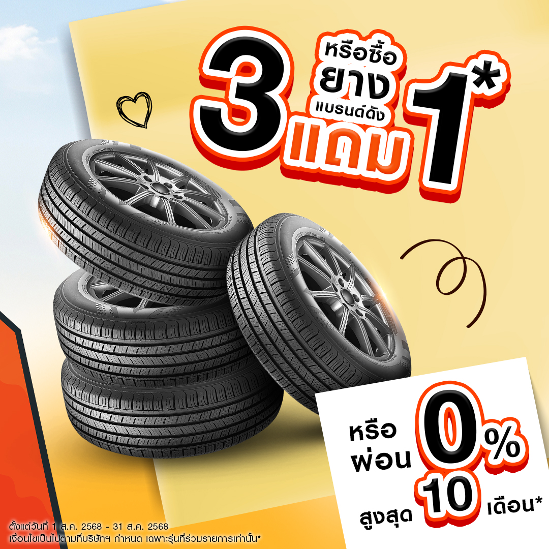 โปรยางคุ้ม ซื้อยางแบรนด์ดัง 3 เส้น แถมฟรี 1 เส้น! (เฉพาะรุ่นที่ร่วมรายการ)