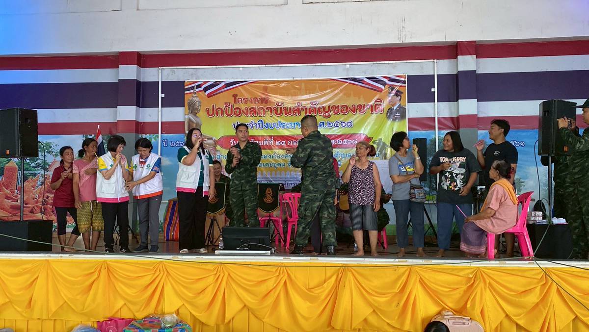 2 ส.ค. 68 ชป.กร. มทบ.22 พร้อมด้วยวงดนตรี มว.ดย.มทบ.22 ลงพื้นที่จัดกิจกรรมแสดงดนตรีเพื่อบำรุงขวัญให้กับประชาชนในพื้นที่รวบรวมพลเรือน ครั้งที่ 5 ร่วมกับ กอ.รมน.จังหวัด อ.บ., อบต.เมืองเดชอุดม, สำนักงานสาธารณสุขอ.บ., สำนักงานสุขภาพจิต จ.มุกดาหาร และคณะสมาชิกวุฒิสภา จำนวน 5 จังหวัด ณ ศูนย์พักพิง อบต.เมืองเดช ต.เมืองเดช อ.เดชอุดม จ.อุบลราชธานี กิจกรรมประกอบด้วย
