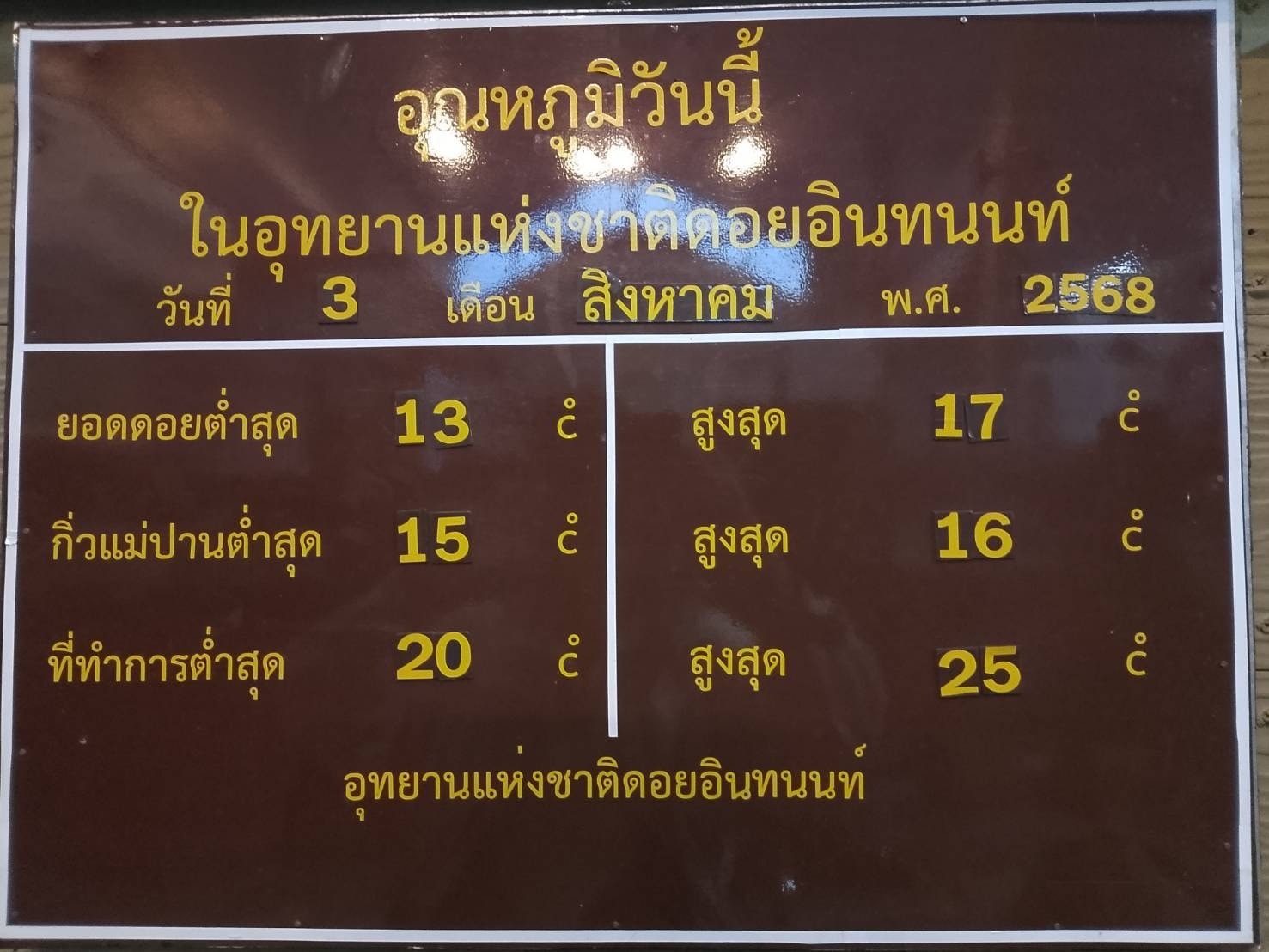 - ยอดดอยอินทนนท์ อุณหภูมิต่ำสุด13°C