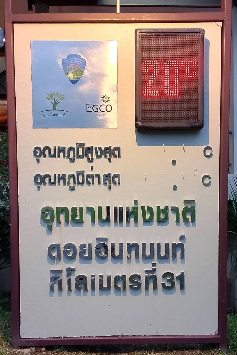 - ที่ทำการอุทยานแห่งชาติดอยอินทนนท์ (กม.31 บ้านขุนกลาง) อุณหภูมิต่ำสุด 20°C