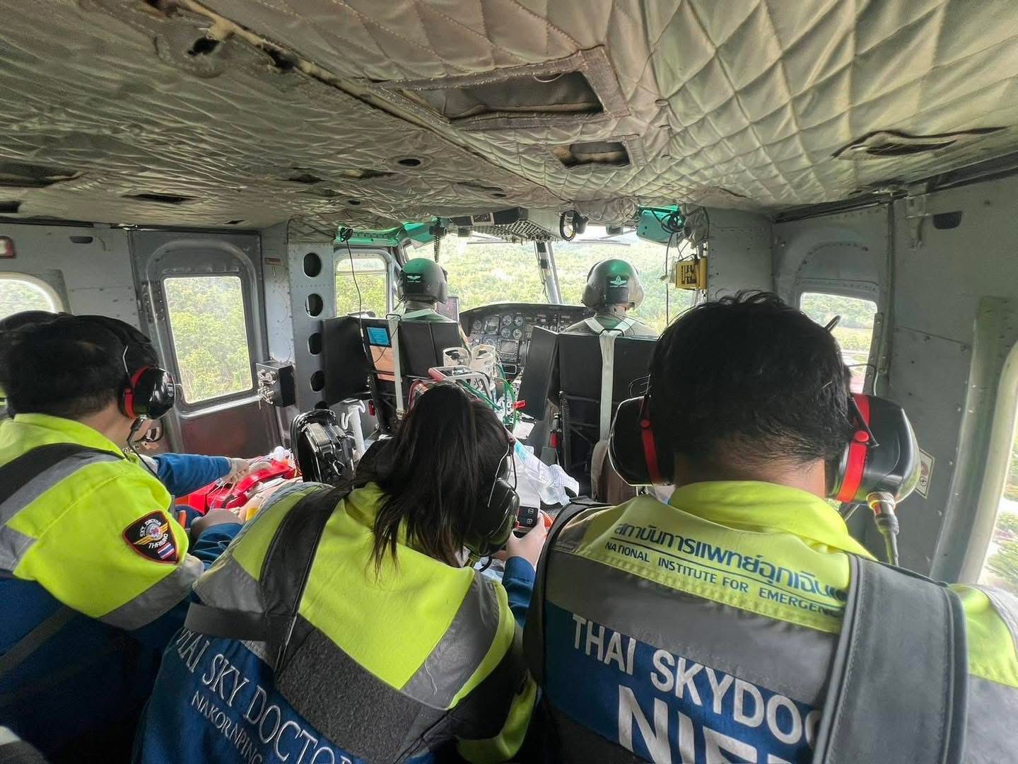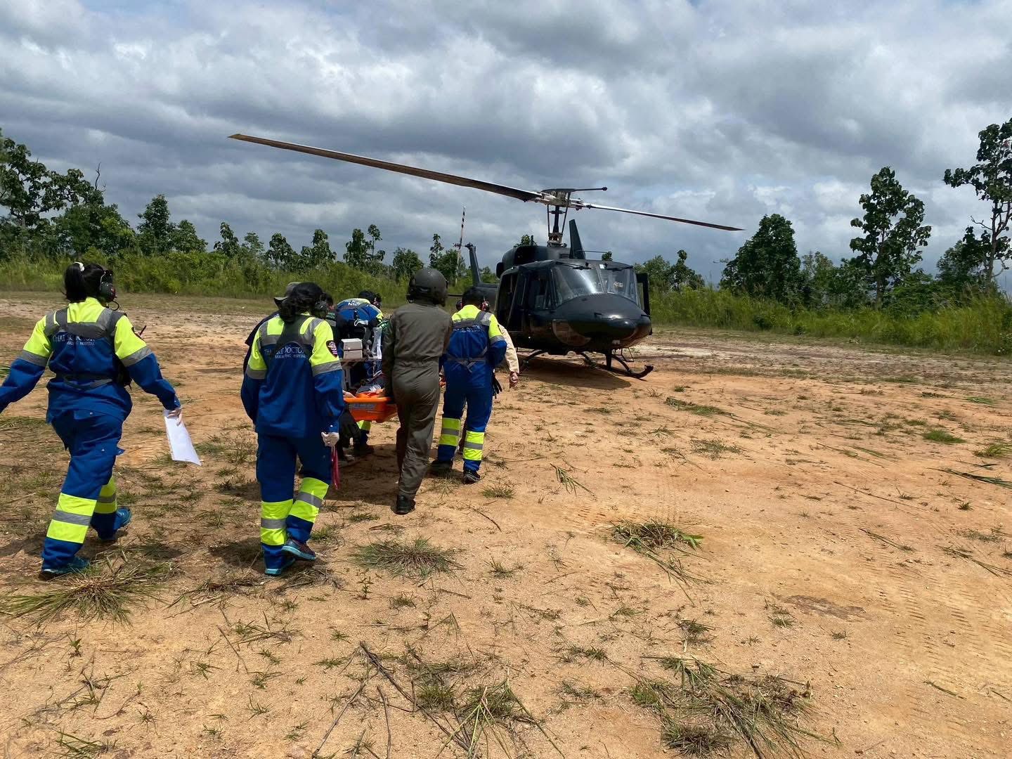 3 ส.ค. 68 กองกำลังผาเมือง โดยชุดปฏิบัติการบินทหารบก กองกำลังผาเมือง จัดเฮลิคอปเตอร์ใช้งานทั่วไป แบบ 212 จำนวน 1 เครื่อง สนับสนุนสถาบันการแพทย์ฉุกเฉินแห่งชาติ (สพฉ.) รับผู้ป่วยฉุกเฉินทางอากาศ เพศชาย อายุ 54 ปี ซึ่งประสบอุบัติเหตุจากการจราจร ได้รับบาดเจ็บที่ศีรษะระดับรุนแรง
