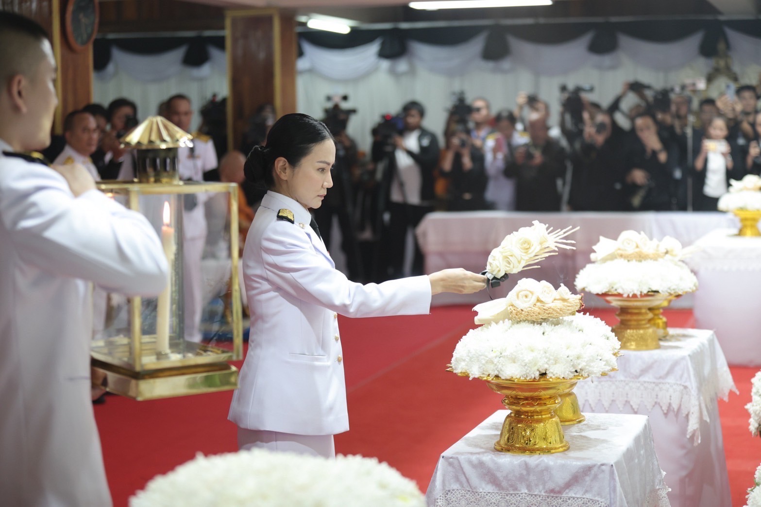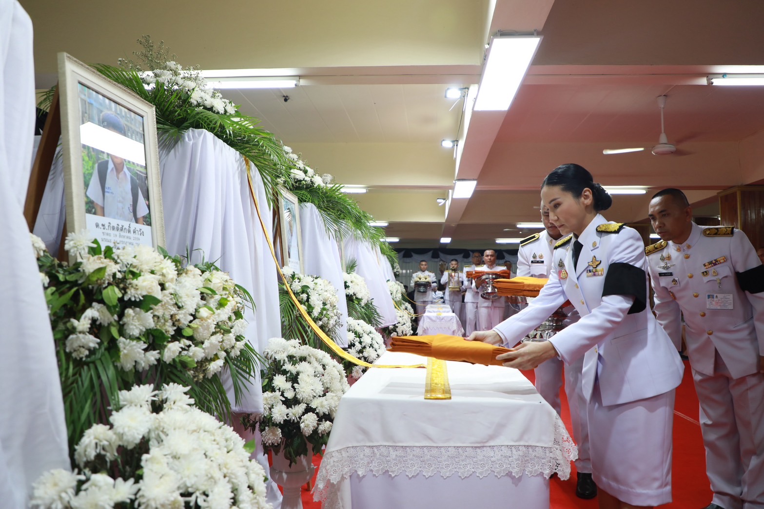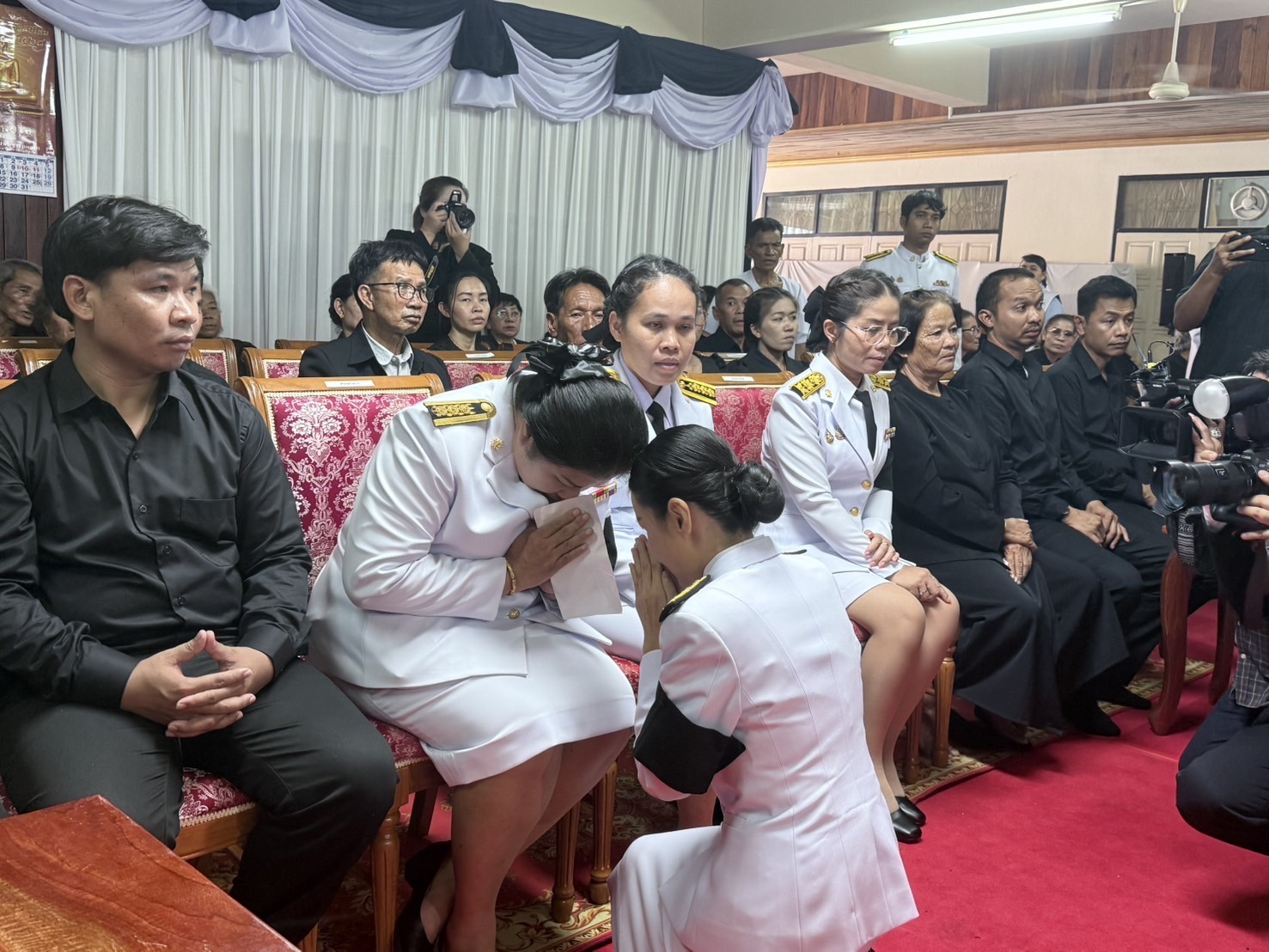 โดย ศ.ดร.นฤมล ภิญโญสินวัฒน์ รัฐมนตรีว่าการกระทรวงศึกษาธิการ และหัวหน้าพรรคกล้าธรรม(กธ.)เป็นประธานพิธี พร้อมด้วย น.ส.ลิณธิภรณ์ วริณวัชรโรจน์ รัฐมนตรีช่วยว่าการกระทรวงศึกษาธิการ,นายสุเทพ แก่งสันเทียะ ปลัดกระทรวงศึกษาธิการ,ว่าที่ร้อยตรี ธนุ วงษ์จินดา เลขาธิการคณะกรรมการการศึกษาขั้นพื้นฐาน,นางเกศทิพย์ ศุภวานิช รองเลขาธิการคณะกรรมการการศึกษาขั้นพื้นฐาน,นายอนุพงศ์ สุขสมนิตย์ ผู้ว่าราชการจังหวัดศรีสะเกษ สำนักงานพระพุทธศาสนาจังหวัดศรีสะเกษ หัวหน้าส่วนราชการ ข้าราชการ ผู้บริหารองค์กรปกครองส่วนท้องถิ่น ผู้นำท้องที่ คณะลูกหลาน และญาติผู้วายชนม์ เข้าร่วมพิธี