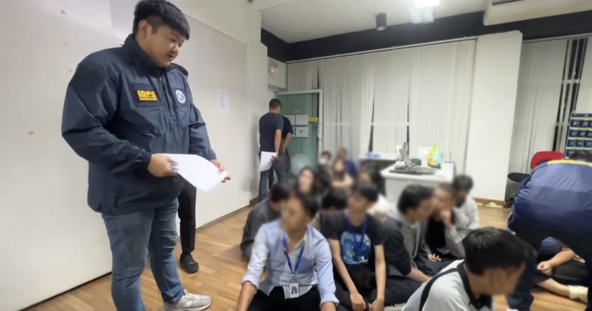 เวลา 15.00 น.วันที่ 4 ส.ค.68 เจ้าหน้าที่ตำรวจสืบสวนภาค 1 เจ้าหน้าที่ตำรวจสืบสวน บก.สตม.นำหมายค้นเข้าตรวจค้นเข้าสอบอาคารพานิชย์ 5 ชั้น ถนนบอนด์สตรีท ต.บ้านใหม่ อ.ปากเกร็ด จ.นนทบุรี พบพนักงานคนไทย จำนวน 31 คน , เวียดนานจำนวน 17 คน , คอมพิวเตอร์โน๊ตบุ๊ก 33 เครื่อง , โทรศัพท์มือถือ 41 เครื่อง ส่วนชั้น 3 เป็นสำนักงานเช่นกัน พบพนักงานคนไทยจำนวน 45 คน ชาวเวียดนาม จำนวน 14 คน คอมพิวเตอร์โน๊ตบุ๊ก 42 เครื่อง , โทรศัพท์มือถือ 39 เครื่อง รวมคนไทยทั้งหมด 76 คน คนเวียดนาม 31 คน