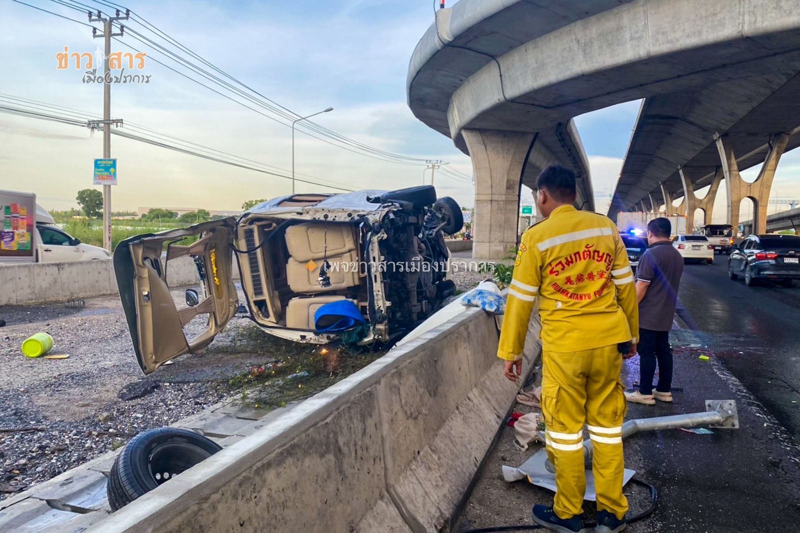 เมื่อเวลา 06.08 น. วันที่ 5 สิงหาคม 2568 เจ้าหน้าที่มูลนิธิร่วมกตัญญูรายงาน อุบัติเหตุรถตู้โตโยต้า สีขาว หมายเลขทะเบียนป้ายแดง ว-6601 กรุงเทพมหานคร พลิกคว่ำตกจากสะพานกลับรถ จุดกลับรถบ้านระกาศ ถนนบางนาตราด กม.32 ช่องทางหลักฝั่งขาเข้า เขตพื้นที่ อ.บางบ่อ จ.สมุทรปราการ