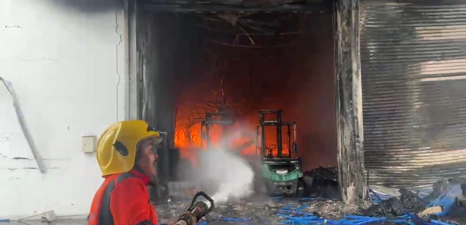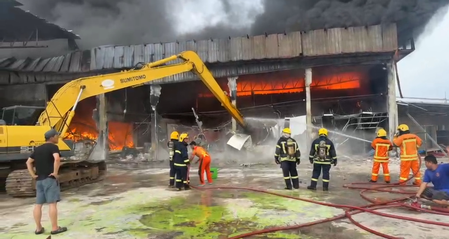 ที่เกิดเหตุเป็นอาคารปูนขนาดใหญ่ เพลิงลุกไหม้อย่างรุนแรง โดยมีกลุ่มควันสีดำโพยพุ่งออกมาจากตัวอาคารเป็นจำนวนมาก ซึ่งบริษัทดังกล่าวเป็นสถานที่ผลิตถุงพลาสติกสำหรับบรรจุอาหาร และมีทินเนอร์ แอลกอฮอล์เป็นวัตถุดิบในการผลิต ถือเป็นเชื้อเพลิงอย่างดี เจ้าหน้าที่ต้องใช้รถแบล็คโฮทุบผนังตัวอาคาร เพื่อเปิดช่องทางให้เจ้าหน้าที่ดับเพลิงเข้าดำเนินการฉีดน้ำและโฟมสกัดเข้าไปภายใน โดยในขณะนี้เจ้าหน้าที่ยังไม่สามารถควบคุมเพลิงได้ สำหรับโรงงานดังกล่าวเคยเกิดเหตุเพลิงไหม้อย่างรุนแรงมาแล้วรวมครั้งนี้เป็นครั้งที่ 3 โดยสาเหตุอยู่ระหว่างการสอบสวนของเจ้าหน้าที่ตำรวจ