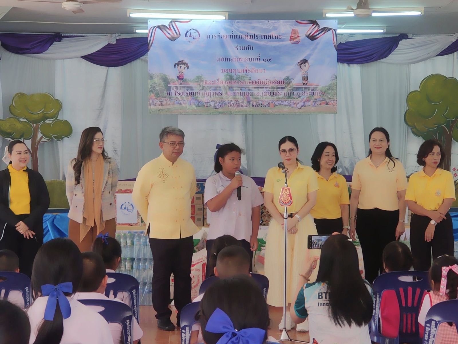 พร้อมกันนี้ ผว.ททท. พร้อมคณะ ได้ร่วมมอบทุนการศึกษาจำนวน 55 ทุน มูลค่า 37,500 บาท ให้กับนักเรียน โรงเรียนบ้านทุ่งพระ ตำบลท่าเกษม อำเภอเมืองสระแก้ว และจัดเลี้ยงก๋วยเตี๋ยว ไอศกรีม เป็นอาหารกลางวันด้วย