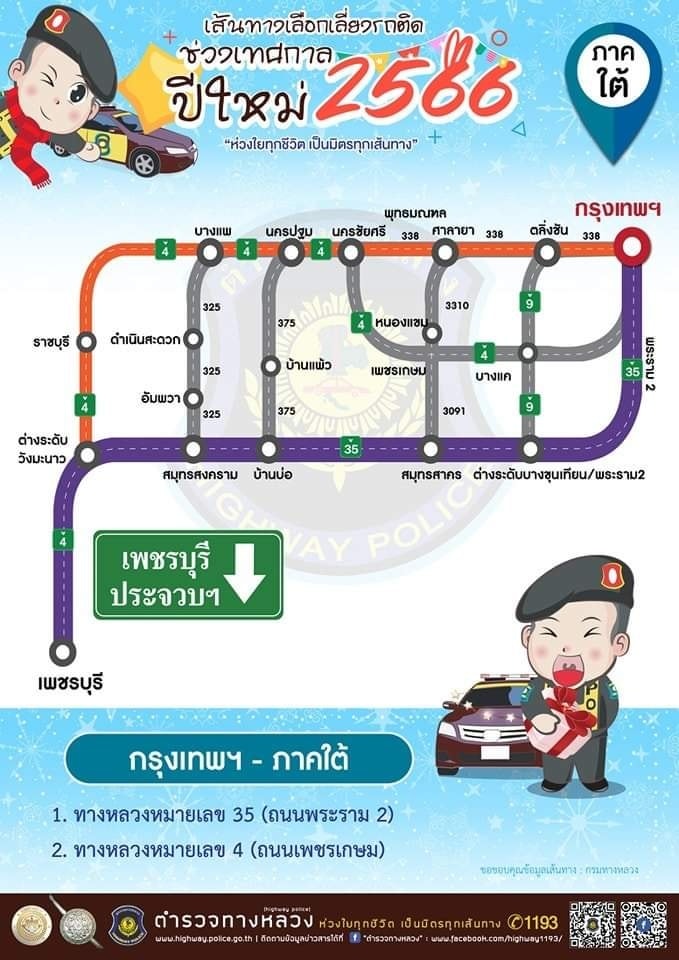 เส้นทางเลี่ยงรถติดสำหรับเทศกาลปีใหม่ 2566 ทั้งหมด 4 ภาค