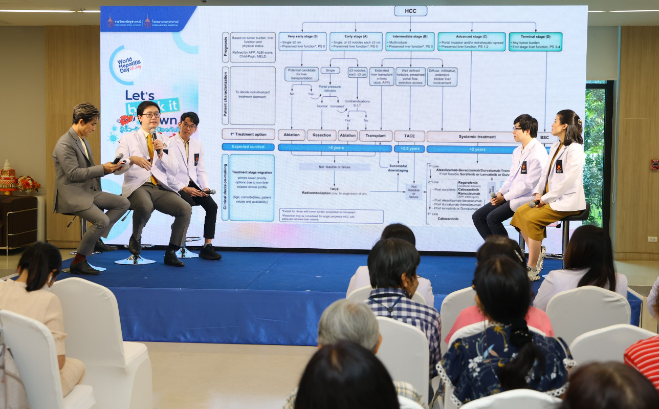 นพ.วรวัฒน์ แสงวิภาสนภาพร หัวหน้างานอายุรกรรมทางเดินอาหาร แพทย์เฉพาะทางด้านอายุรศาสตร์ทางเดินอาหารและตับ เปิดเผยถึง อุบัติการณ์ไวรัสตับอักเสบและมะเร็งตับ (Global vs Thailand) ว่า “ข้อมูลล่าสุด ปี 2022 มีผู้ติดเชื้อไวรัสตับอักเสบเรื้อรัง ทั้งไวรัสตับอักเสบบีและซีเรื้อรังสะสมอยู่ประมาณ 300 ล้านคน ในประชากรเหล่านี้เป็นไวรัสตับอักเสบบีประมาณ 250 ล้านคน พบผู้ป่วยรายใหม่กว่า 2 ล้านรายต่อปี (ข้อมูลจาก GLOBOCAN 2022) พบบ่อยในภูมิภาคเอเชีย โดยเฉพาะเอเชียตะวันออกเฉียงใต้ จีนและในประเทศไทย คาดว่ามีผู้ติดเชื้อไวรัสตับอักเสบบีเรื้อรังอยู่ประมาณ 2-4% ของประชากรไทย อยู่ที่ประมาณ 2 ล้านคน และไวรัสตับอักเสบซีอยู่ที่ประมาณ 0.3-0.6% หรือประมาณ 300,000 กว่าคน โดยมีแนวทางการกำจัดไวรัสตับอักเสบบี (HBV Elimination Goals) โดยเป้าหมายขององค์การอนามัยโลก (WHO) ตั้งเป้าลดจำนวนผู้ติดเชื้อรายใหม่ลง 90% ลดอัตราการเสียชีวิตจากไวรัสตับลง 65% ลดทุกอุปสรรคทางสังคม ระบบการเข้าถึงการป้องกัน คัดกรอง และการรักษา ซึ่งมีกลยุทธ์หลัก คือ การฉีดวัคซีนไวรัสตับบี การตรวจคัดกรอง (Screening) การให้ยาต้านไวรัส (Tenofovir, Entecavir) และการเฝ้าระวังมะเร็งตับในผู้ติดเชื้อ HBV เรื้อรัง ส่วนภาพรวมการรักษาโรคมะเร็งตับ (Liver Cancer Treatment) ขึ้นอยู่กับปัจจัยดังนี้ ระยะของโรค (Early vs Advanced) สภาพตับ (เช่น ตับแข็งหรือไม่) ภาวะสุขภาพโดยรวมของผู้ป่วย”