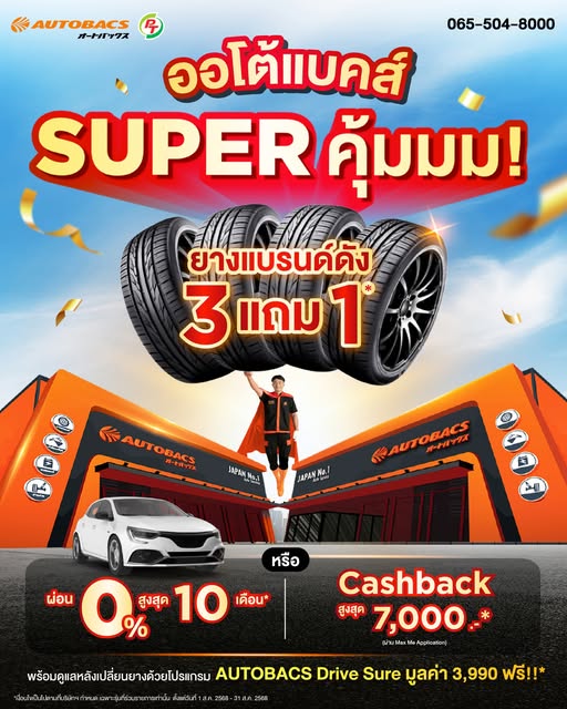 *เงื่อนไขเป็นไปตามที่บริษัทฯ กำหนด เฉพาะรุ่นที่ร่วมรายการเท่านั้น เช็กสาขาใกล้คุณ คลิก: https://www.autobacs.co.th/th/branch