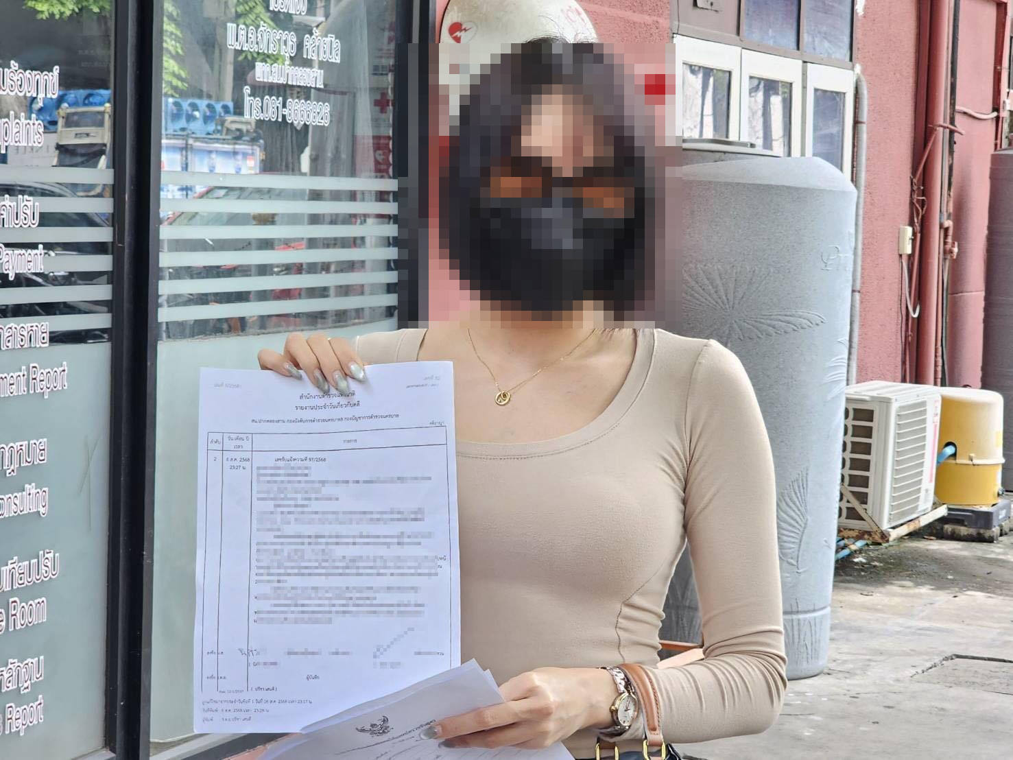 โดย น.ส.นอ ได้เข้าแจ้งความกับเจ้าหน้าที่ตำรวจ สน.ปากคลองสาน ไว้แล้ว และวันนี้ได้เดินทางมายื่นเอกสารทางการแพทย์เพื่อเป็นหลักฐานเพิ่มเติม เธอกล่าวว่าต้องการให้เจ้าหน้าที่ตำรวจดำเนินคดีให้ถึงที่สุด และอยากฝากบอกอดีตแฟนเก่าว่า "ตนเองทำอะไรผิดมากถึงขั้นให้คนตามมาคุกคามทำร้ายร่างกายแบบนี้"