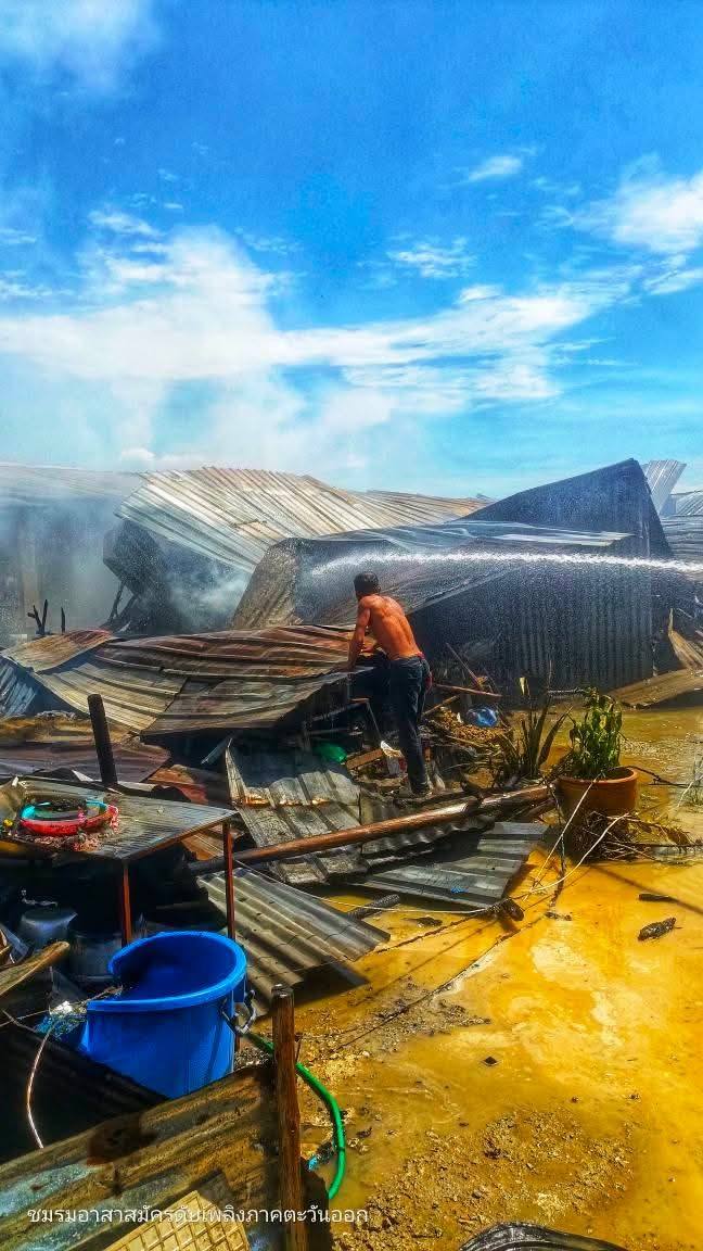 ไฟไหม้ภายในแคมป์ก่อสร้าง เพลิงลุกไหม้ห้องพักคนงานเสียหายลอดหลายห้อง จ.ชลบุรี