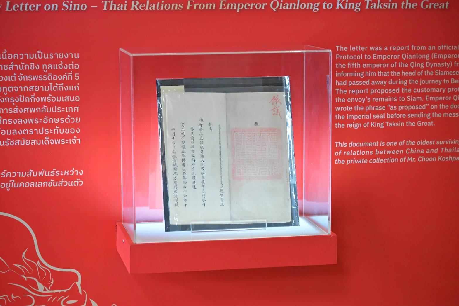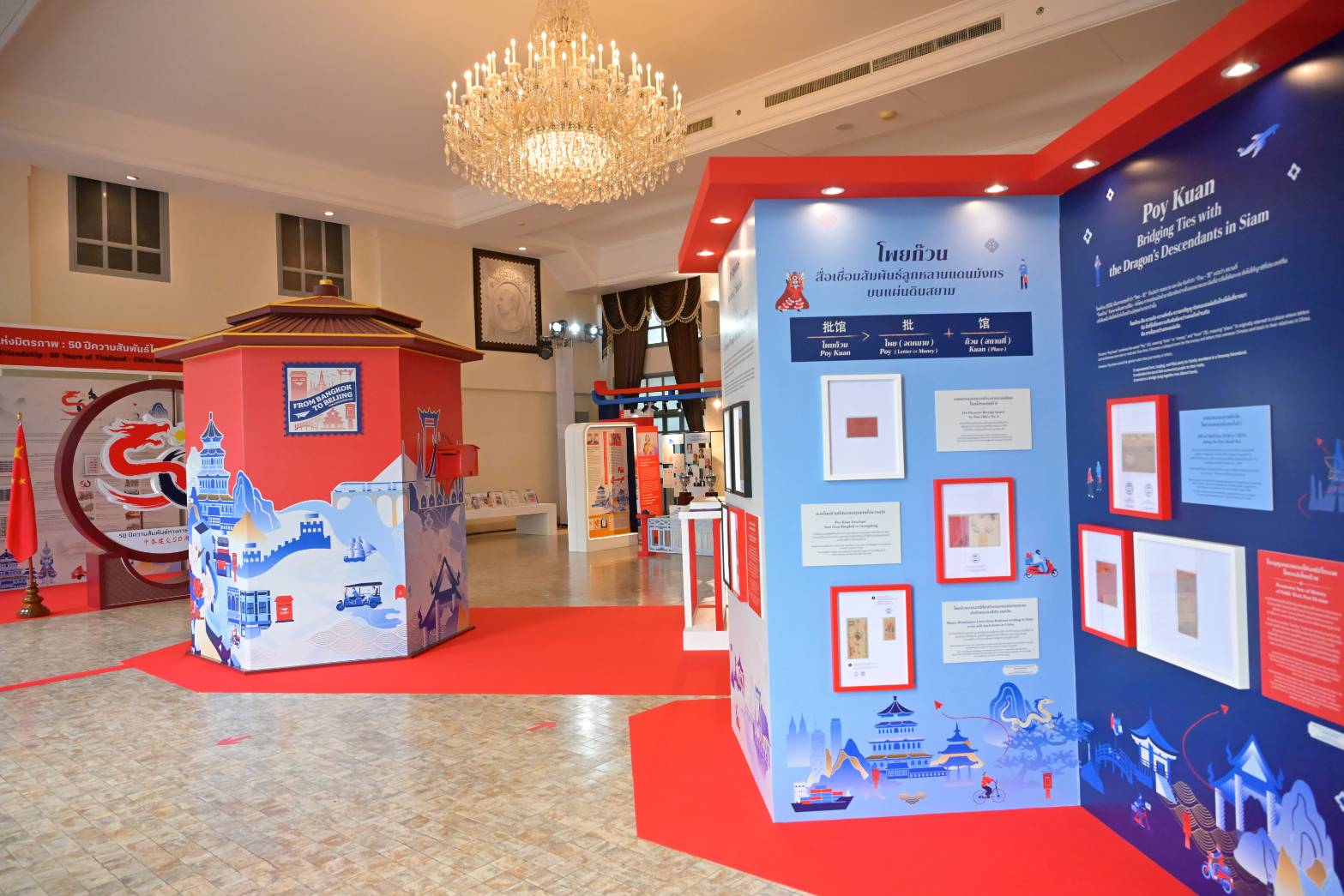 • นิทรรศการเส้นทางการสื่อสารไปรษณีย์ที่เชื่อมความสัมพันธ์ระหว่างไทย – จีน ตั้งแต่สมัยรัชกาลที่ 5 -8 รวมถึงการแสดงเอกสารสำคัญทางประวัติศาสตร์อันล้ำค่า อาทิ โพยก๊วน แสตมป์ฤชากร คอลเลกชันแสตมป์ไทย-จีน ที่หาดูได้ยาก