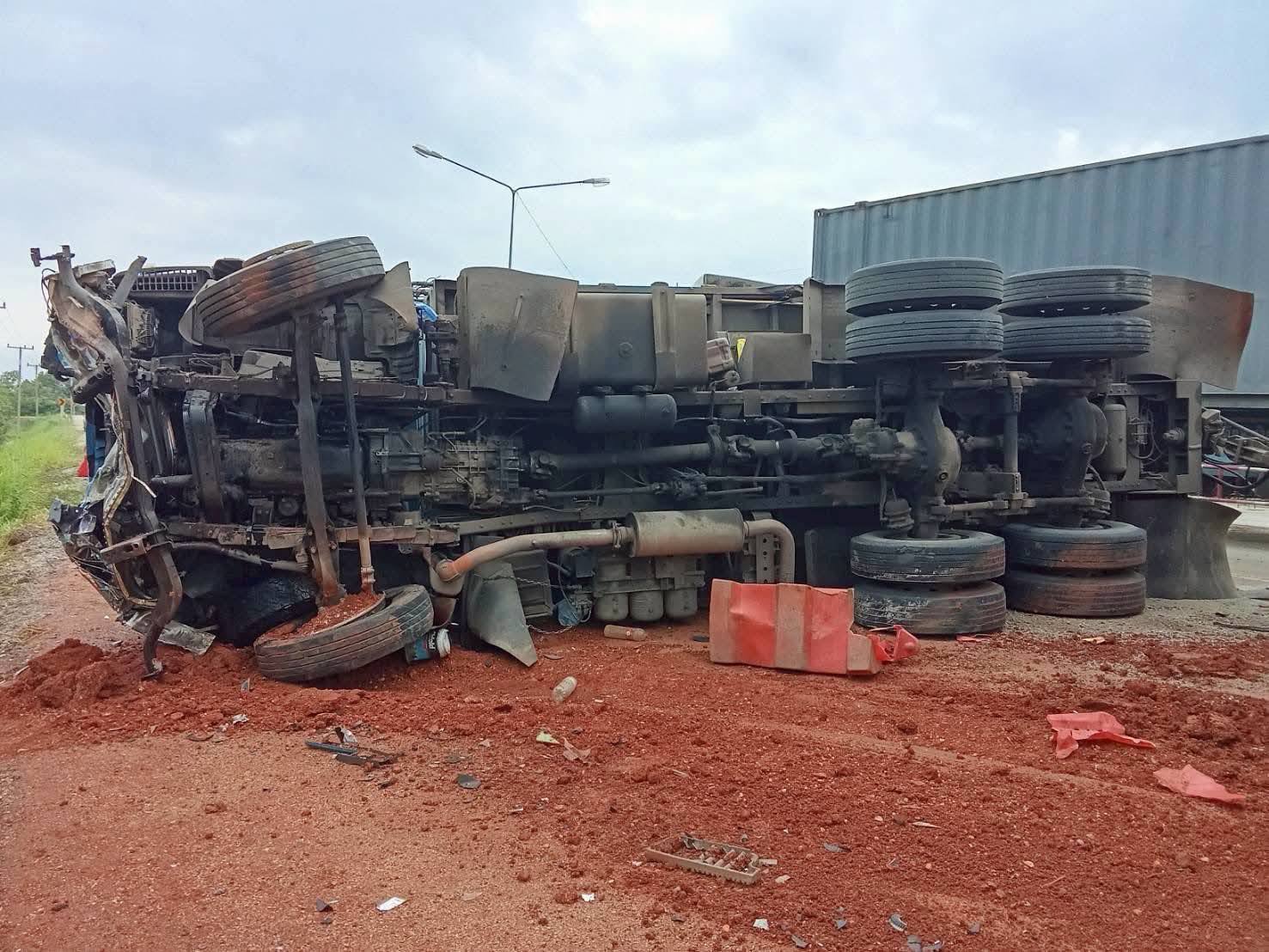 รถกระบะชนกับรถบรรทุกกลางถนน มีผู้เสียชีวิตในซากรถ จ.ขอนแก่น