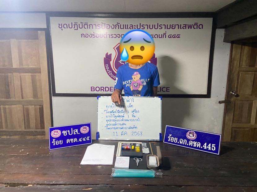 วันที่ 11 ส.ค.68 ร.ต.อ.มาตุภูมิ ธรรมเนียม รอง ผบ.ร้อย ตชด.445 / หัวหน้าชุดป้องกันและปราบปรามยาเสพติด สืบทราบว่า ที่บ้านหลังหนึ่ง ในพื้นที่ ม.5 ต.ตาเนาะแมเราะ อ.เบตง จ.ยะลา มีการลักลอบจำหน่ายยาเสพติดให้กับกลุ่มวัยรุ่นและผู้ใช้แรงงานในพื้นที่ จึงรายงานให้ พ.ต.ท.อเนชา ตาวัน ผบ.ร้อย ตชด.445 รับทราบ พร้อมนำกำลังเจ้าหน้าที่ ตชด.ชุดป้องกันและปราบปรามยาเสพติด (ชป.นเรศ) และเจ้าหน้าที่ชุดปฏิบัติการงานการข่าว ร้อย ฉก.ตชด.445 เข้าตรวจค้นจับกุม