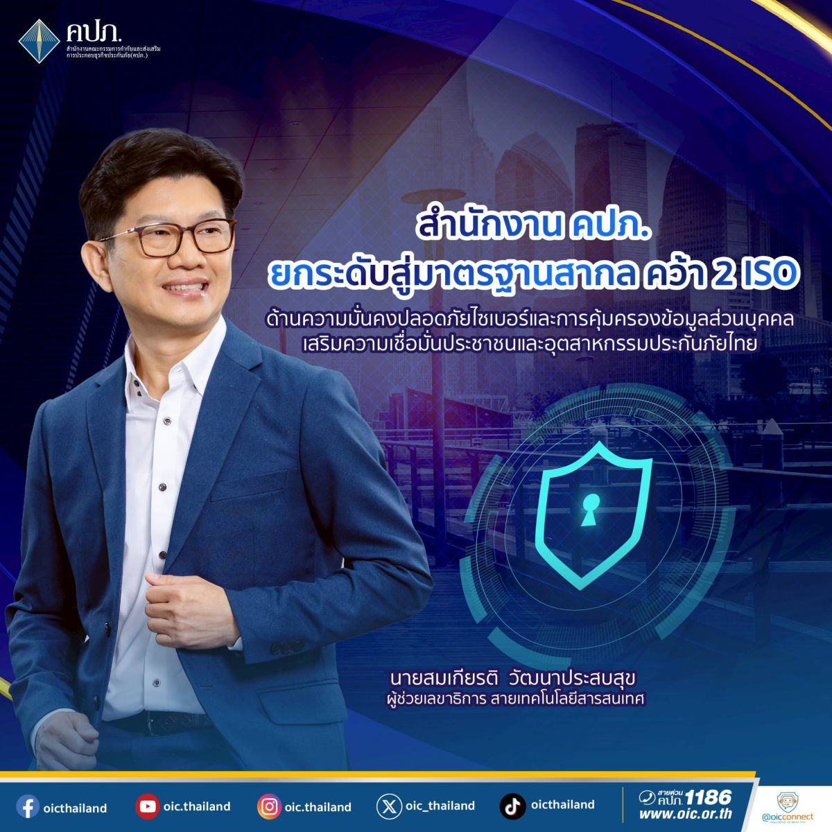 สำนักงาน คปภ. ยกระดับสู่มาตรฐานสากล คว้า 2 ISO ด้านความมั่นคงปลอดภัยไซเบอร์และการคุ้มครองข้อมูลส่วนบุคคล เสริมความเชื่อมั่นประชาชนและอุตสาหกรรมประกันภัยไทย