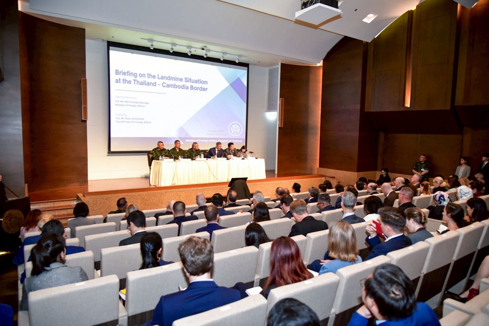 รัฐบาลไทยขอประณาม พฤติกรรม และการกระทำอย่างรุนแรงที่สุด ซึ่งถือเป็นการกระทำที่บ่อนทำลายสาระที่สำคัญที่สุดของอนุสัญญาออตตาวา รวมถึงเจตนารมณ์ของปฏิญญาเสียมราฐ-อังกอร์ ที่ได้รับการรับรองภายใต้การปกครองของกัมพูชาในเดือนพฤศจิกายน พ.ศ. 2567 และถือเป็นการละเมิดกฎหมายมนุษยธรรมระหว่างประเทศอย่างร้ายแรง