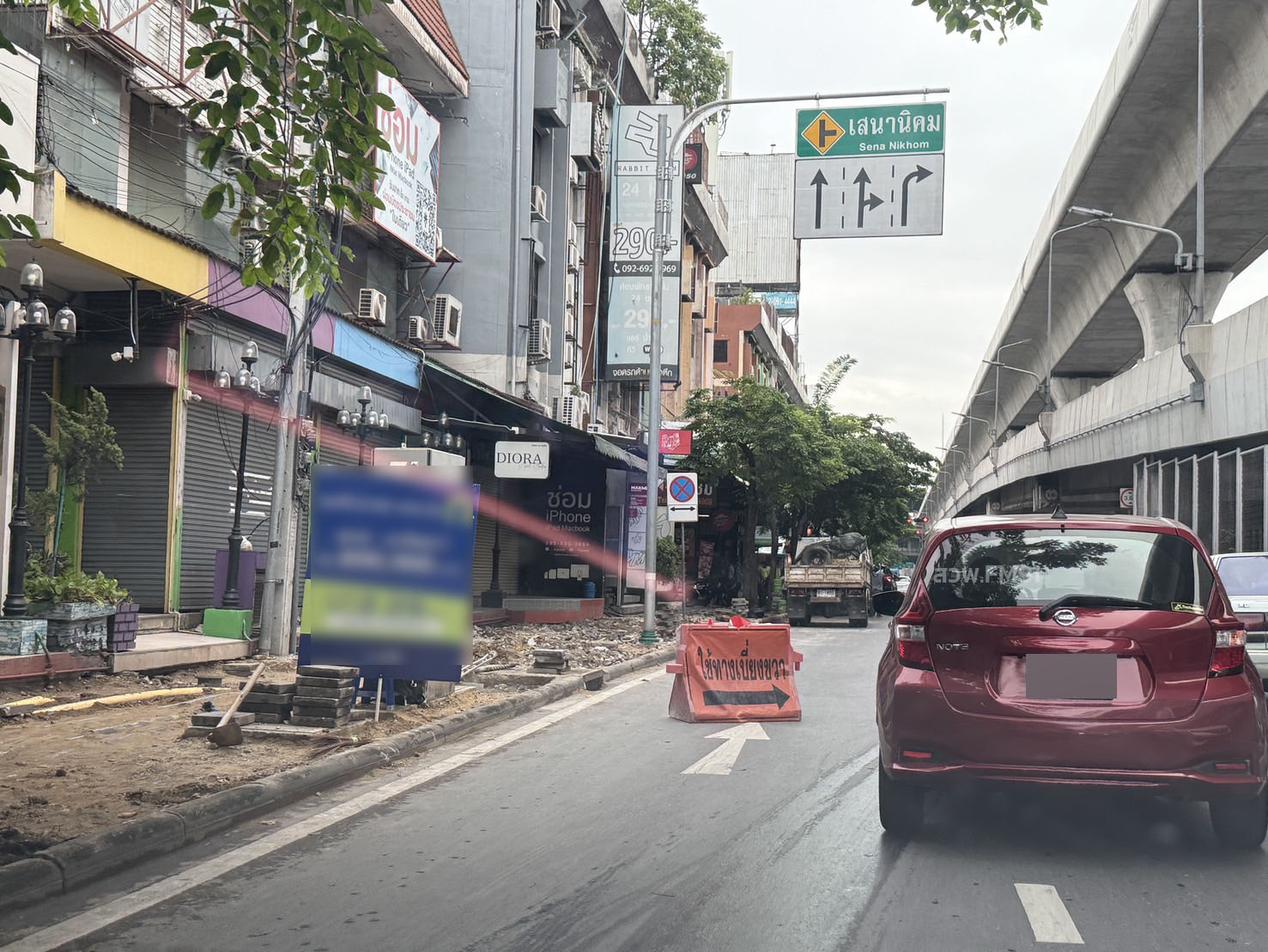 เจ้าหน้าที่ทำงาน ถนนพหลโยธิน ขาออก ก่อนถึงแยกเสนานิคม บนฟุตปาธมีเจ้าหน้าที่ทำงาน และ มีรถจอดเลนซ้าย ผ่านได้เลนขวาเลนเดียวจราจรผ่านจุดนี้เริ่มติดขัด