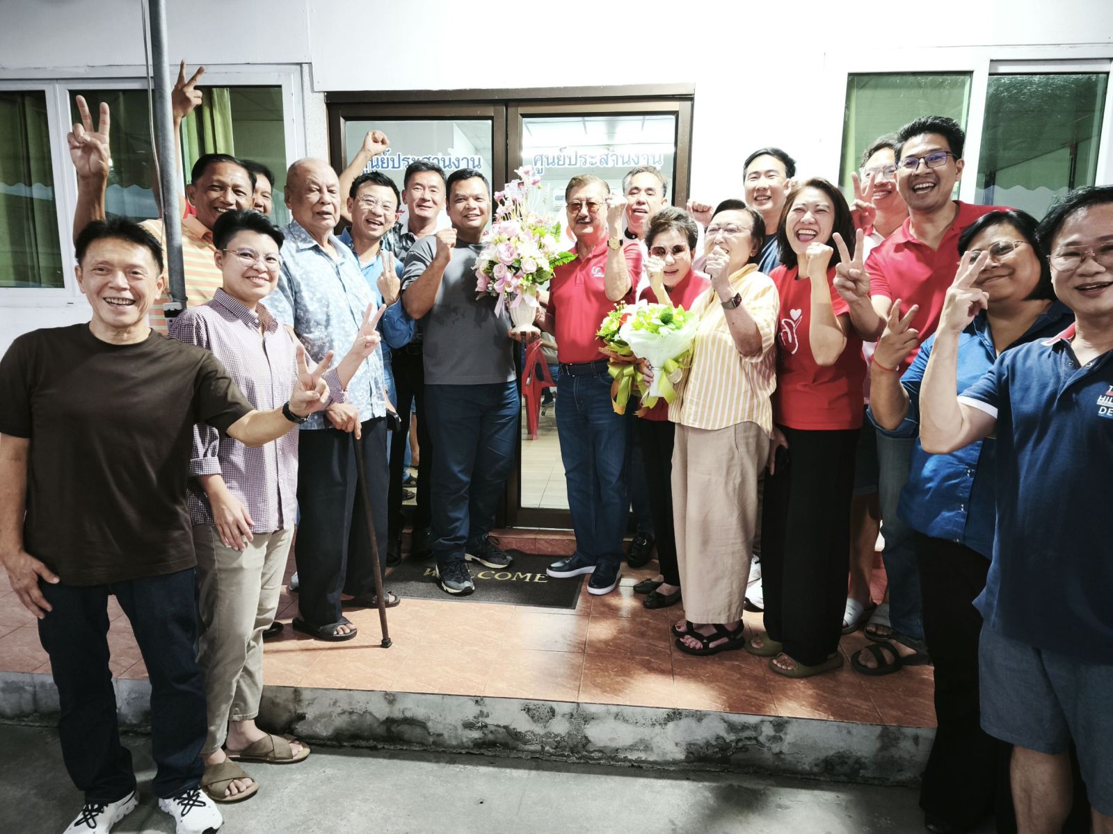 บรรยากาศที่ศูนย์ประสานงานกลุ่มพลังหนุ่ม ต.บางกระสอ อ.เมืองนนทบุรี หลังจากทราบผลการเลือกตั้งแล้ว มีประชาชนเดินทางมาร่วมแสดงความยินดีกับนายพงศ์ชัย เป็นจำนวนมาก โดยมีนายนายสมนึก ธนเดชากุล นายกเทศมนตรีนครนนทบุรี นักการเมืองพร้อมประชาชนมามอบดอกไม้แสดงความยินดี