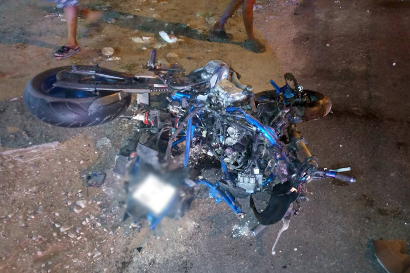 ที่เกิดเหตุ พบรถจักรยานยนต์ บิ๊กไบค์ สีฟ้า ทะเบียน ภูเก็ต สภาพรถได้รับความเสียหายอย่างหนัก เหลือแต่ซาก เนื่องจากเกิดไฟลุกไหม้หลังเกิดอุบัติเหตุ ล้มคว่ำอยู่บนถนน ห่างออกไปเล็กน้อยพบรถบรรทุกปูนซิเมนต์ 18 ล้อจอดอยู่