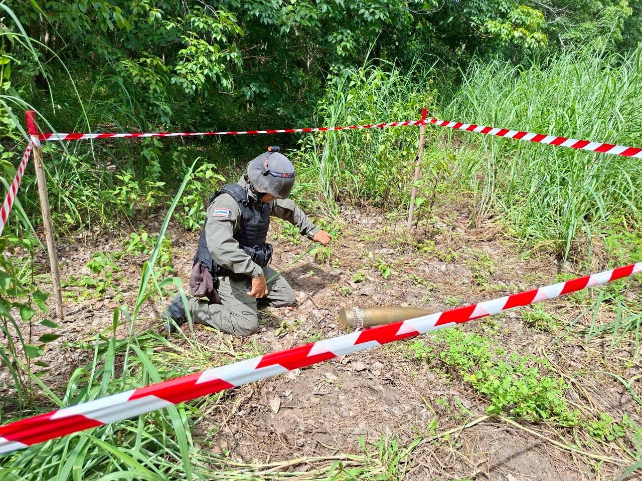 จนท.ชุดปฏิบัติการเก็บกู้และทำลายวัตถุระเบิด ทำลายกระสุนปืนใหญ่ไม่ทำงาน พื้นที่ จ.ศรีสะเกษ