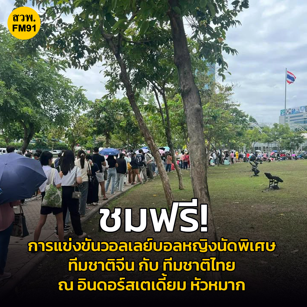 19 ส.ค. 68 การแข่งขันวอลเลย์บอลหญิงนัดพิเศษ ทีมชาติจีน กับ ทีมชาติไทย ณ อินดอร์สเตเดี้ยม หัวหมาก เวลา 16.00 น. เข้าชมฟรี ไม่มีค่าใช้จ่าย