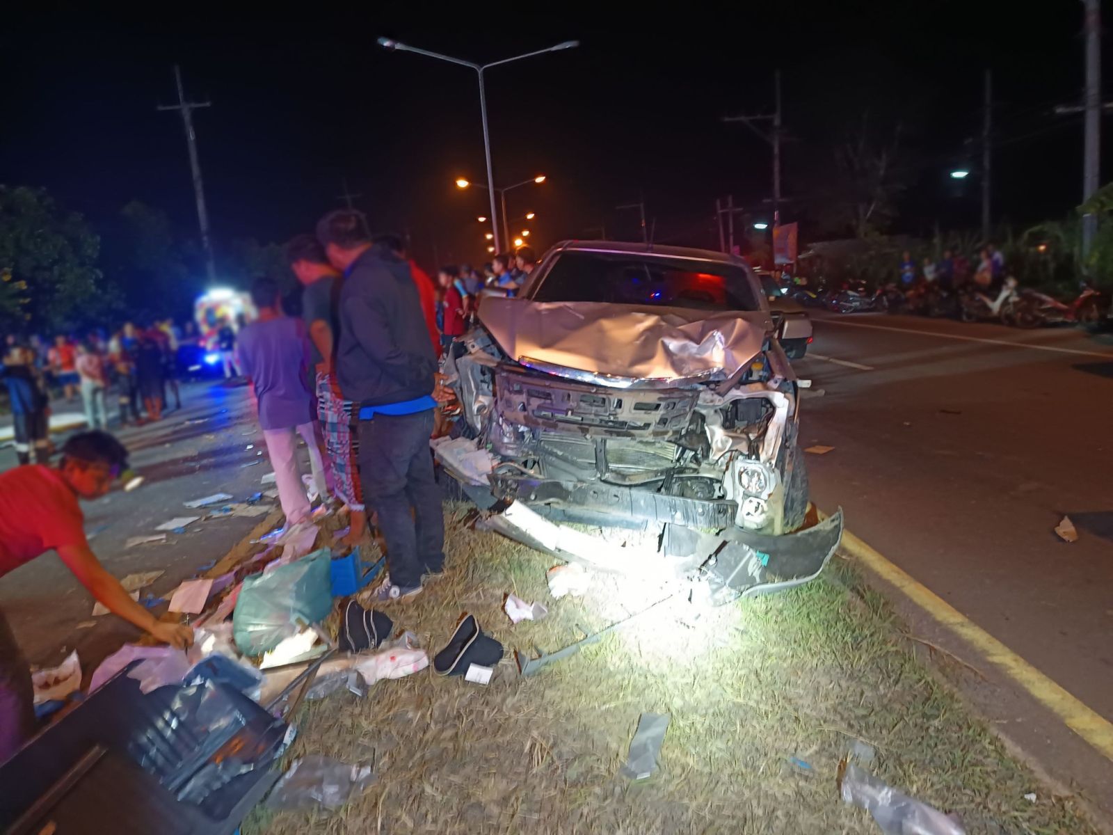 อุบัติเหตุ รถกระบะ 2 คันและรถจักรยานยนต์พ่วงข้าง กลางถนนหมายเลข 403 มีผู้เสียชีวิตหญิง 1 ราย จ.นครศรีธรรมราช