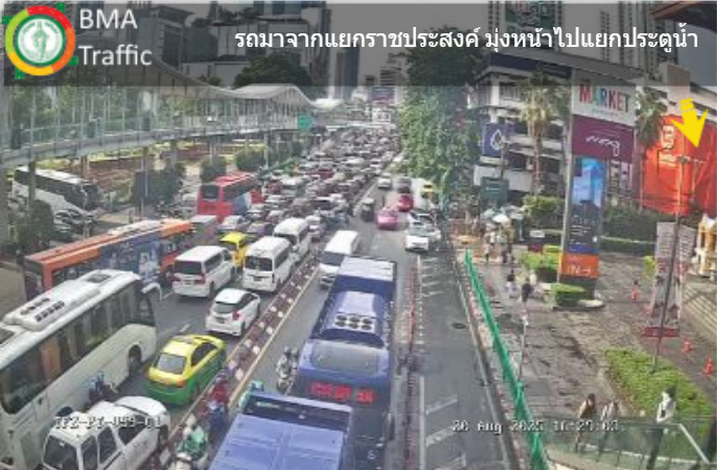 20 สิงหาคม 2568 เวลา 16.29 น. เส้นทางถนนราชปรารภ จากสี่แยกราชประสงค์ไปจนถึงสี่แยกมักกะสัน รถติดขัดมาก ปัญหาบีบสภาพคอขวด ช่วงซอยราชปรารภ 11 ก่อนเลี้ยวไปยังถนนจตุรทิศ และพื้นที่มีฝนโปรยปรายลงมาเล็กน้อย จากจุดนี้มีผลให้ถนนพระรามที่1 แยกเฉลิมเผ่า แยกปทุมวัน, ถนนพญาไท ถนนอังรีดูนังต์ เลี้ยวขวาออกถนนพระรามที่ 1 เพื่อไปทางสี่แยกราชประสงค์ ได้รับผลกระทบไปด้วย