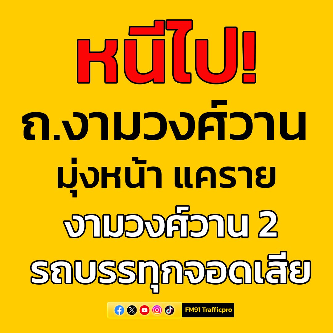 20 ส.ค. 68 เวลา 16.55 น. ถ.งามวงศ์วาน ขาออก ก่อนถึงแยกแคราย ปากซอยงามวงศ์วาน 2 รถบรรทุก 6 ล้อจอดเสีย อยู่ระหว่างเคลื่อนย้าย