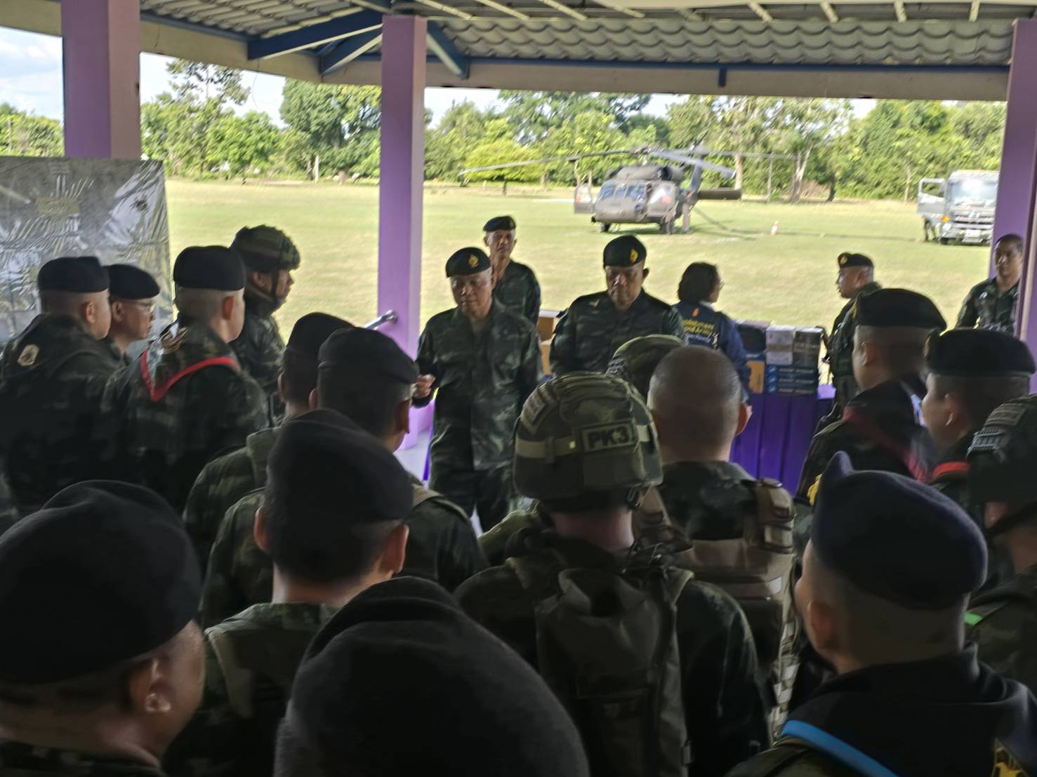 เมื่อวันที่ 20 ส.ค.68 พล.ท.บุญสิน พาดกลาง แม่ทัพภาคที่ 2 เดินทางลงพื้นที่หน่วยเฉพาะกิจที่ 1 ,2 และ 3 กองกำลังสุรนารี เพื่อนำสิ่งของ พร้อมขนมพระราชทานจากสมเด็จพระกนิษฐาธิราชเจ้า กรมสมเด็จพระเทพรัตนราชสุดาฯ สยามบรมราชกุมารี เพื่อนำไปให้ทหารที่ปฏิบัติหน้าที่ตามแนวชายแดนไทย-กัมพูชา ทรงรับสั่ง ให้นำไปแจกจ่ายทหารให้ครบทุกคน และมีความเป็นห่วงใย