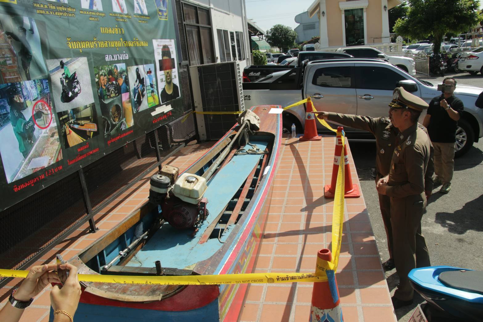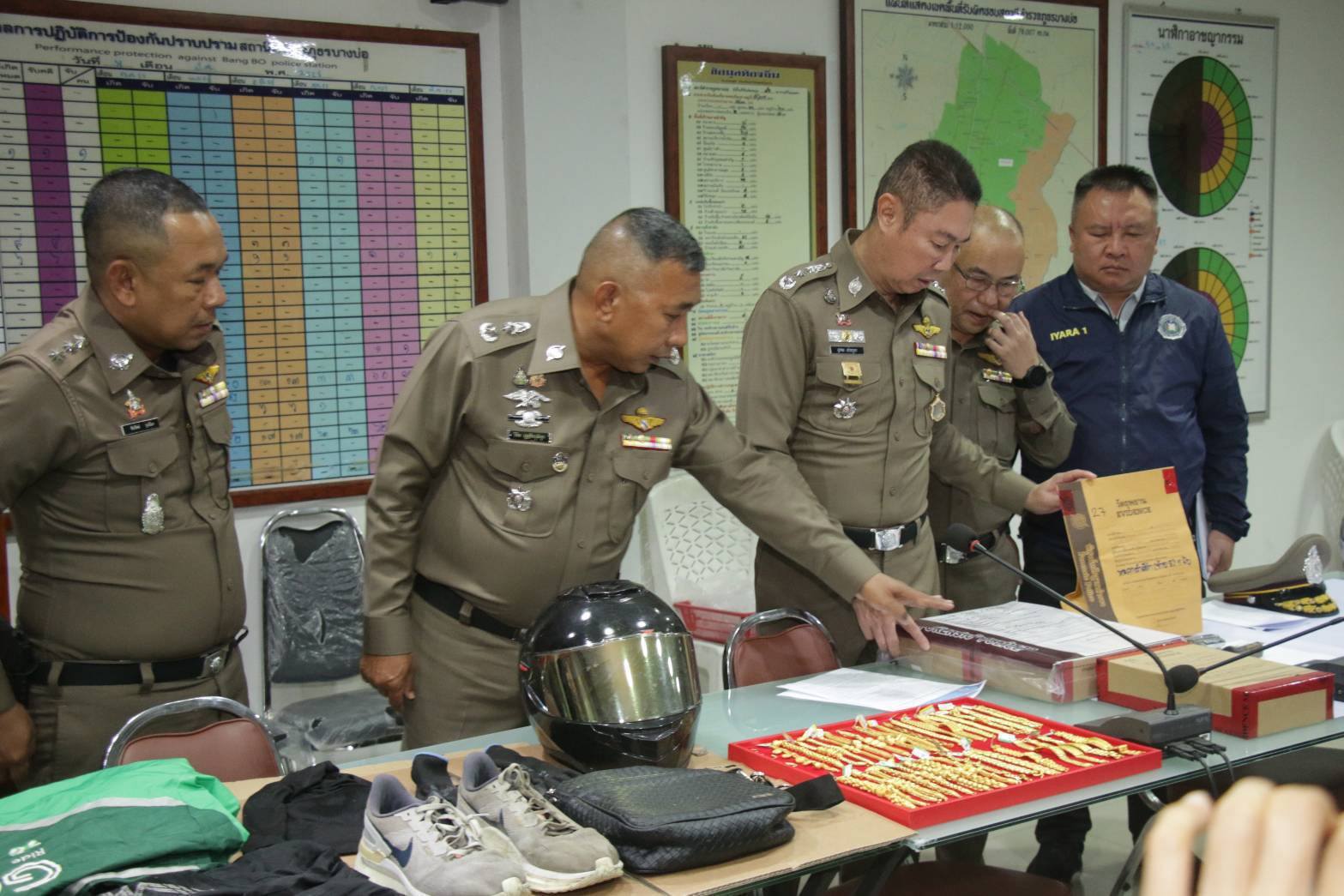 จากกรณี เมื่อวันที่ 14 สิงหาคม 2568 พนักงานสอบสวน สภ.บางบ่อ , ภ.จว.สมุทรปราการ ได้รับแจ้งเหตุคนร้ายก่อเหตุชิงทรัพย์ร้านทองภายในห้างแห่งหนึ่ง ย่านบางบ่อ โดยใช้อาวุธปืน และหลังก่อเหตุคนร้ายได้ใช้รถจักรยานยนต์ และเรือหางยาว เป็นยานพาหนะใช้ในการหลบหนี มีทรัพย์สินถูกประทุษร้าย ทองคำรูปพรรณ สร้อยข้อมือ 75 เส้น น้ำหนักรวม 125 บาท คิดเป็นมูลค่าประมาณ 5 ล้านบาท