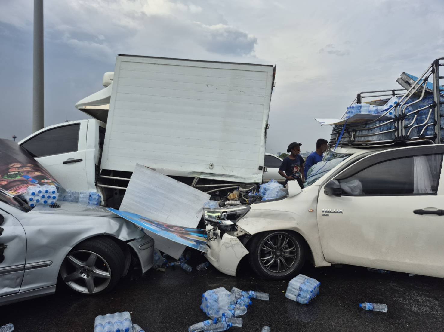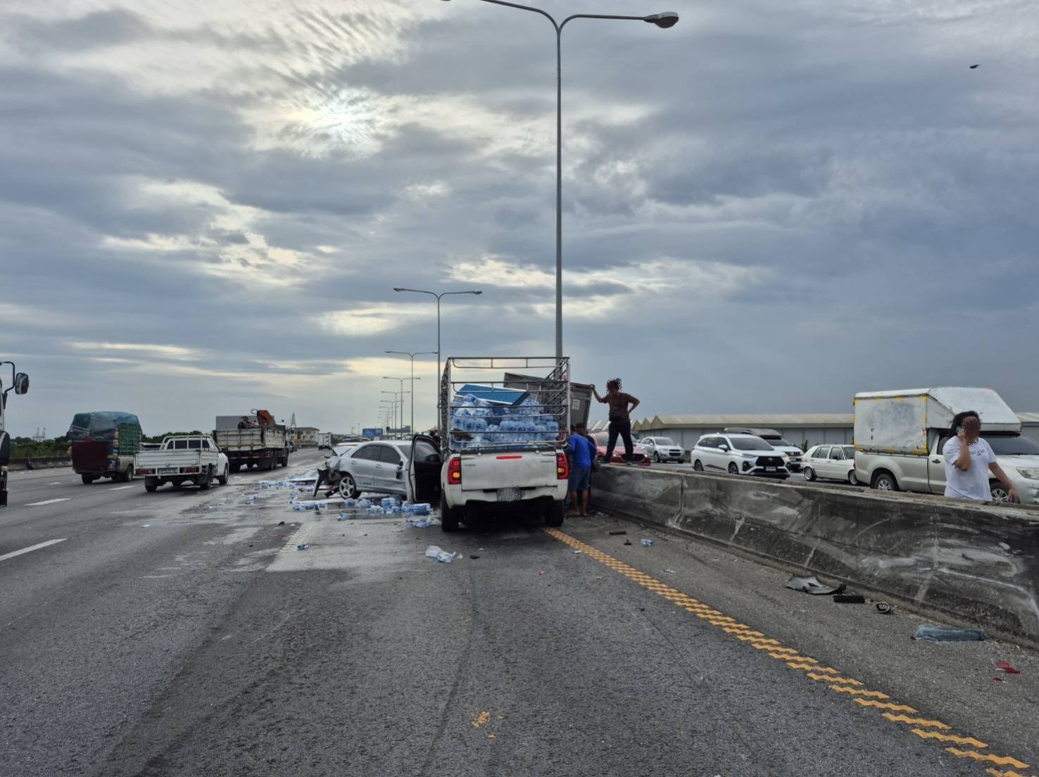 วันที่ 21 สิงหาคม 2568 เวลา 17.15 น. รับแจ้งจาก ม.ป่อเต็กตึ๊ง ว่า มีอุบัติเหตุและมีผู้ได้รับบาดเจ็บจำนวนหลายราย เหตุเกิดบนทางพิเศษกาญจนาภิเษก (บางพลี-สุขสวัสดิ์) ขึ้นมาจาก ช้างสามเศียร ประมาณ 500 เมตร กม.15+600A ทิศทางมุ่งหน้าพระราม 2