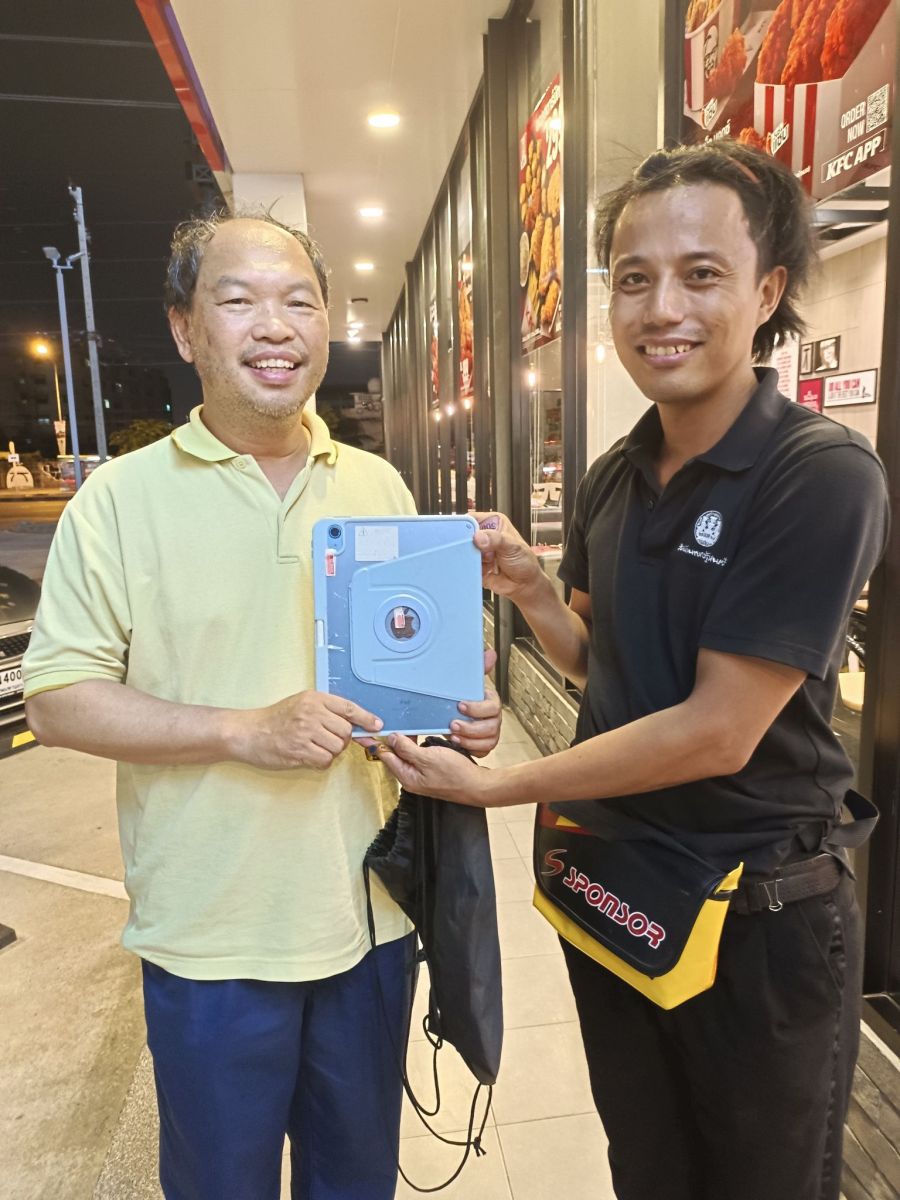 คืบหน้า…ในเวลาต่อมา ได้ตรวจสอบข้อมูลจากไอแพดจนตามเจอเจ้าของและส่งคืนเจ้าของเรียบร้อยแล้วครับ