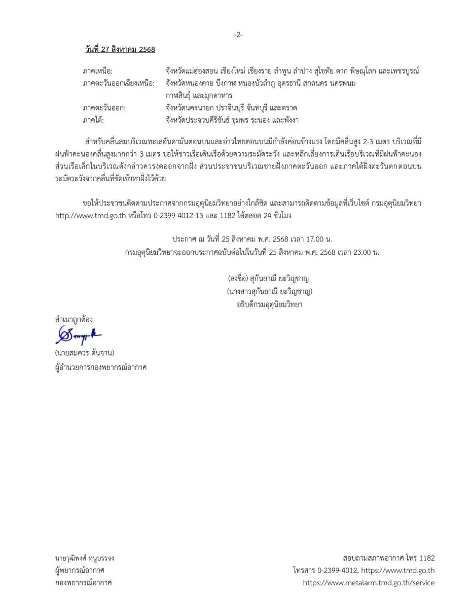 กรมอุตุนิยมวิทยาจะออกประกาศฉบับต่อไปในวันที่ 25 สิงหาคม พ.ศ. 2568 เวลา 23.00 น.