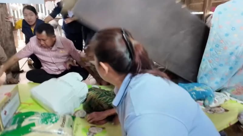ลูกสาวของยายเรียง อายุ 85 ปี กล่าวว่า ตู้ที่ล้มเป็นตู้ใส่เสื้อผ้า 1 และเป็นตู้กับข้าว 2 สาเหตุที่ตู้ล้ม เพราะว่าเจ้าหน้าที่หน่วยงานภาครัฐขึ้นมาบนบ้าน ประมาณเกือบ 20 คน และบ้านซึ่งเป็นบ้านเก่าแก่เสื่อมโทรมมากแล้ว จึงทำให้ไม้กระดาน เกิดอาการทรุด ตู้ลมคว่ำล้มเข้ามาทับคุณยายตามที่ปรากฎภาพ แต่โชคดีไม่มีใครได้รับบาดเจ็บ