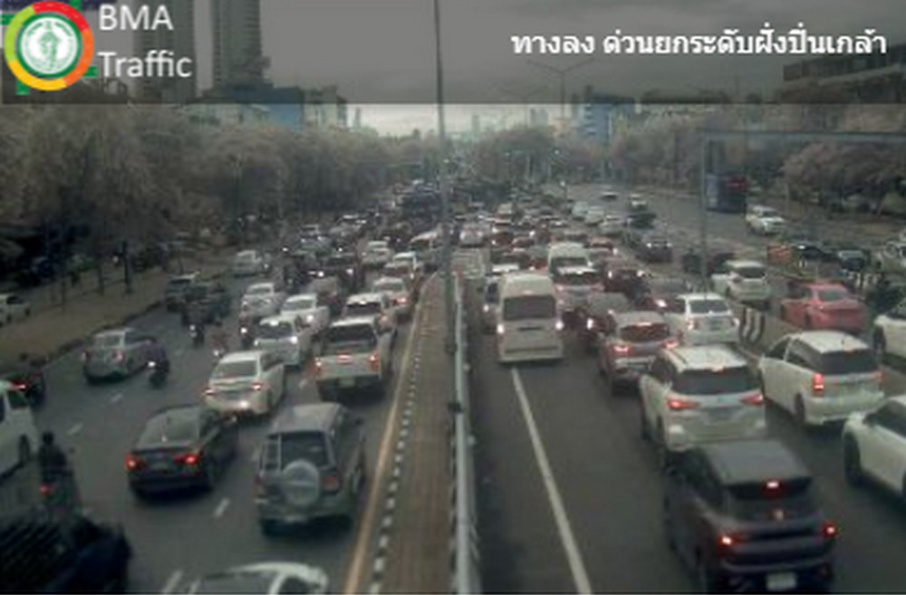 - สะพานพระราม 3 ฝั่งขาเข้า ท้ายแถวสะสมอยู่ที่แยกรัชดา-ตลาดพลู