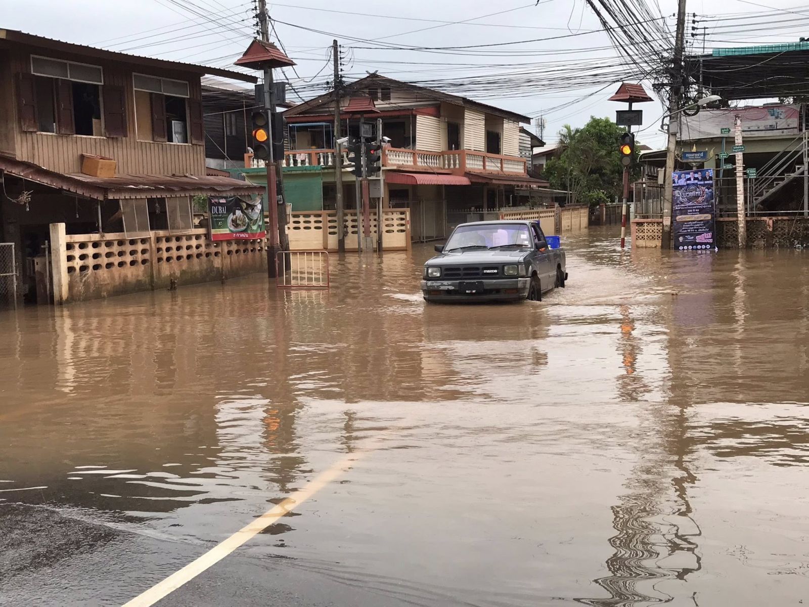 เวลา 08.00 น. ที่แยกชุมชนภูมินทร์-ท่าลี่ น้ำท่วมขังรอระบาย เทศบาลเมืองน่าน และหน่วยงานที่เกี่ยวข้องเร่งสูบน้ำดำเนินการแก้ไข