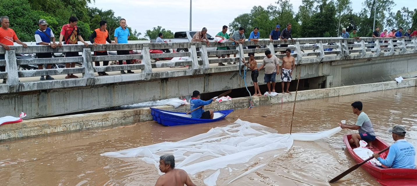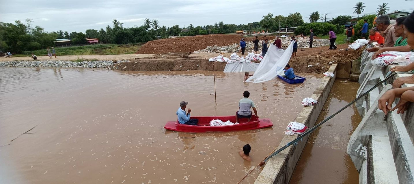 4. หมู่ที่ 1 ตำบลยางซ้าย อำเภอเมืองสุโขทัย น้ำไหลซึมผ่านกระสอบทราย