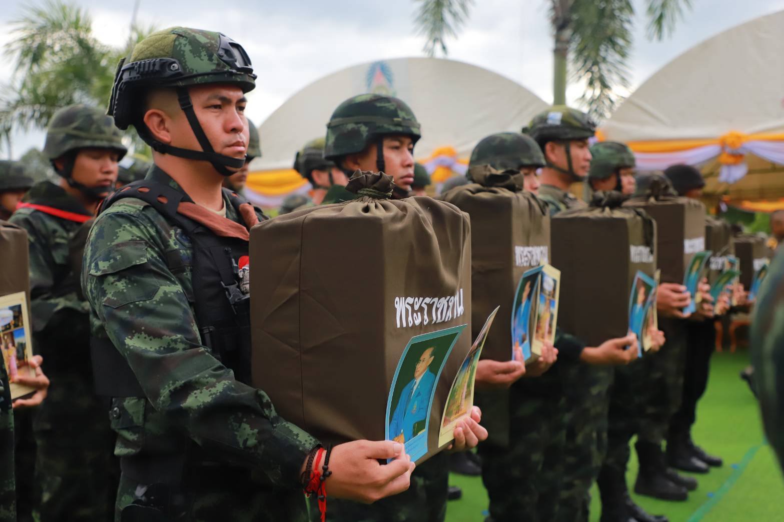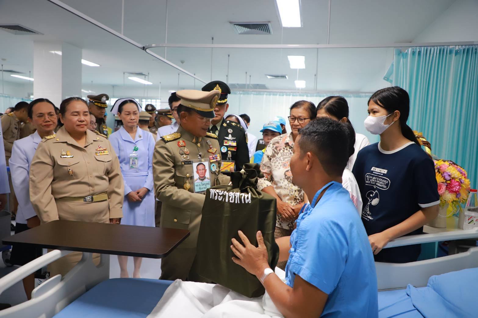 พระบาทสมเด็จพระเจ้าอยู่หัว โปรดเกล้าฯ ให้ พลเอก ไพบูลย์ คุ้มฉายา องคมนตรี เชิญสิ่งของพระราชทานมอบแก่กำลังพลที่ได้รับบาดเจ็บจากสถานการณ์ชายแดนไทย-กัมพูชา ในพื้นที่จังหวัดสุรินทร์