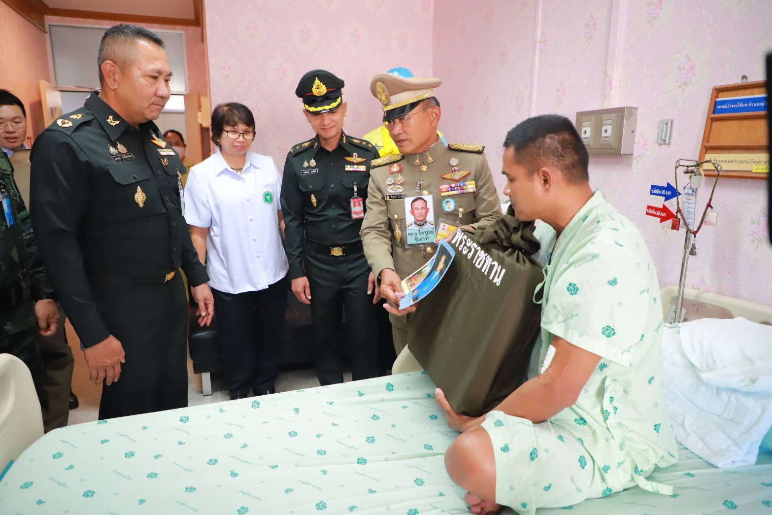ทั้งนี้ องคมนตรีและคณะฯ ได้เดินทางไปเชิญสิ่งของพระราชทานมอบให้แก่กำลังพลที่ได้รับบาดเจ็บ ณ โรงพยาบาลปราสาท อำเภอปราสาท จังหวัดสุรินทร์ จำนวน 3 ราย ได้แก่ จ.ส.อ. จักรกฤษณ์ เพลงเสนาะ แน่นหน้าอก บาดเจ็บเล็กน้อย, จ.ส.อ. ณัฐพงษ์ สีชิน มีแผลจากสะเก็ดระเบิดด้านหลังขวา, และพลทหาร ธรรณ์ณธร เทากระโทก แน่นหน้าอก บาดเจ็บข้อมือซ้าย