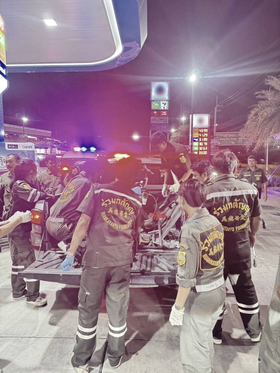 ที่เกิดเหตุบริเวณตู้เติมน้ำมัน พบผู้ได้รับบาดเจ็บ ทราบชื่อในเวลาต่อมาคือ นายออ (นามสมมุติ) อายุ 34 ปี ชาว จ.เชียงใหม่ มีบาดแผลถูกแทงด้วยอาวุธมีดเข้าที่ท้องเป็นแผลฉกรรจ์ อยู่ใกล้รถกระบะ สีเทา หมายเลขทะเบียน เชียงใหม่ หลังถูกเจ้าหน้าที่ บช.ปส. นำโดย พ.ต.อ มงคล ออมทรัพย์ บก.สกส.บช.ปส. ไล่ติดตามรถกระบะของนายออ ซึ่งขับหลบหนีการตรวจค้นจากด่านพยุหะคีรี จ.นครสวรรค์ มาจนถึงบริเวณปั๊ม ปตท. ในพื้นที่ ต.คลองข่อย อ.ปากเกร็ด จ.นนทบุรี