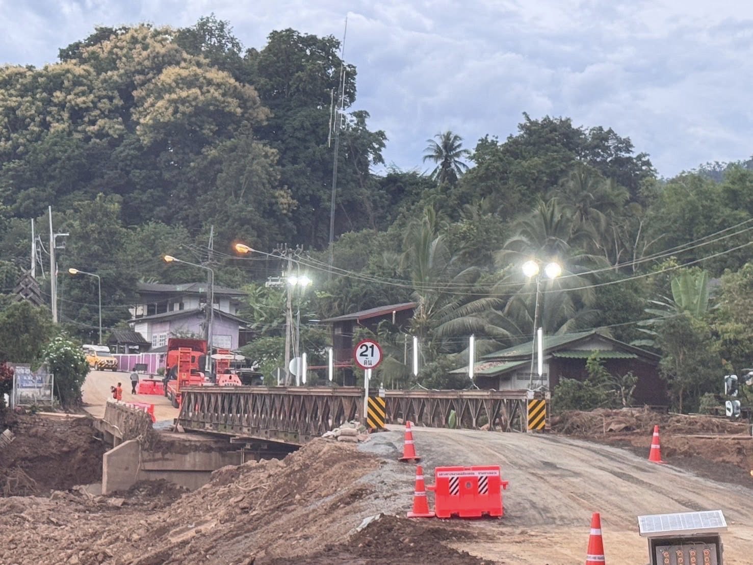 นายวรศักดิ์ วงษ์รอด ผู้อำนวยการสำนักงานทางหลวงที่ 1 (เชียงใหม่) แจ้งว่า ขณะนี้ได้ดำเนินการติดตั้งสะพานเบลี่ย์ ซึ่งดำเนินการโดยศูนย์สร้างและบูรณะสะพานที่ 1 (พิจิตร) ได้ทำการทอดสะพานเบลี่ย์แล้วเสร็จ รวมทั้ง งานถมทางขึ้น - ลง (ramp) สะพานเบลี่ย์, งานติดตั้งป้ายและอุปกรณ์อำนวยความปลอดภัย ทั้งนี้ สามารถเปิดการจราจรได้แล้ว เพื่ออำนวยความสะดวกให้กับประชาชนในการสัญจร