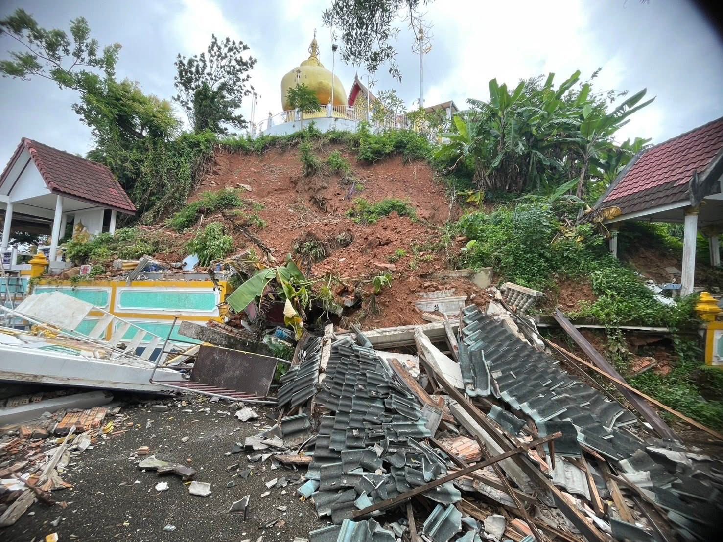 อย่างไรก็ตามสำหรับเหตุการณ์ดินสไลด์ บริเวณพระธาตุอินทร์แขวน จำลอง ในพื้นที่วัดเกาะสิเหร่ อำเภอเมืองภูเก็ต จังหวัดภูเก็ต เริ่มเกิดขึ้นเมื่อวันที่ 25 สิงหาคม 2568 เวลาประมาณ 11.40 น. เกิดเหตุดินสไลด์ในพื้นที่วัดเกาะสิเหร่ อำเภอเมืองภูเก็ต จังหวัดภูเก็ต เนื่องจากมีฝนตกหนักอย่างต่อเนื่อง ทำให้ดินบริเวณที่ลาดเชิงเขาไหลลงมาในพื้นที่ และเมื่อวันนี้ ( 31 สิงหาคม 2568) เวลา 09.30 น. พบว่า มีดินสไลด์เพิ่มเติมบริเวณศาลาประดิษฐานองค์พระธาตุอินทร์แขวง จำลอง เนื่องจากดินบริเวณดังกล่าวอุ้มน้ำ จนมีน้ำหนักเพิ่มขึ้นและสูญเสียแรงยึดเกาะ ทำให้ดินเลื่อนไหลลงสู่พื้นด้านล่าง